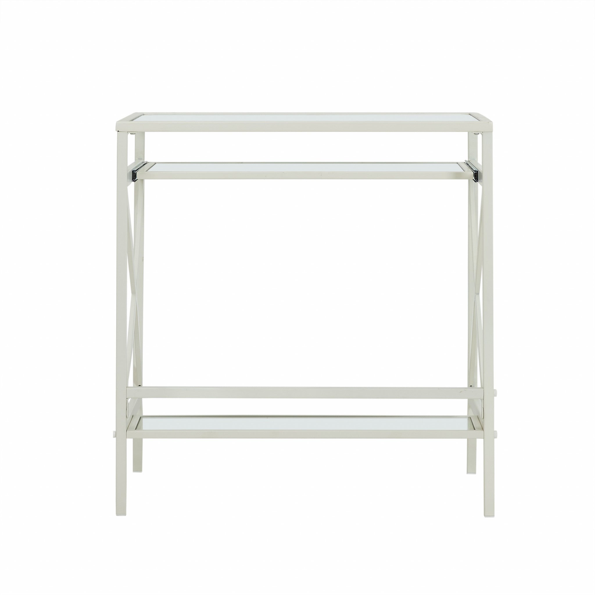 - 1 sliding glass shelf and 1 static glass shelf.