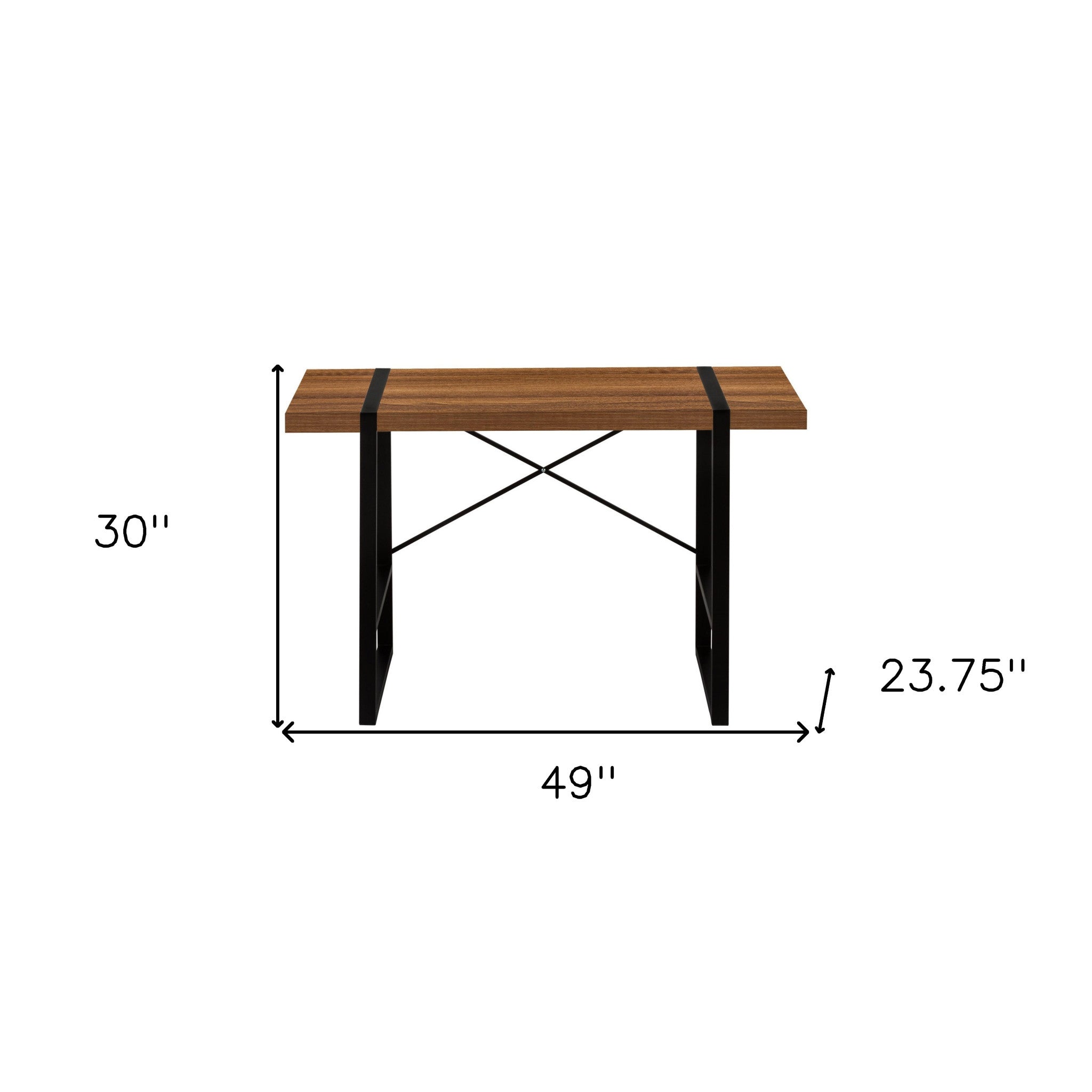 - Industrial-inspired computer desk with a thick-panel desktop in a walnut wood-look finish