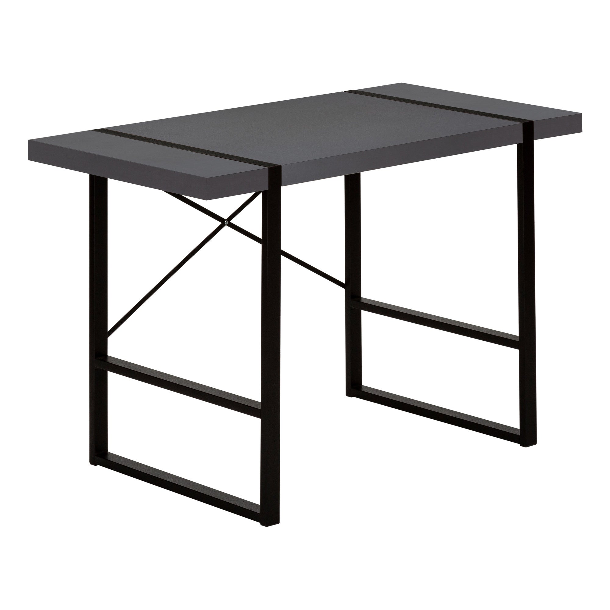 - Industrial-inspired computer desk with a thick-panel desktop in a modern grey finish
