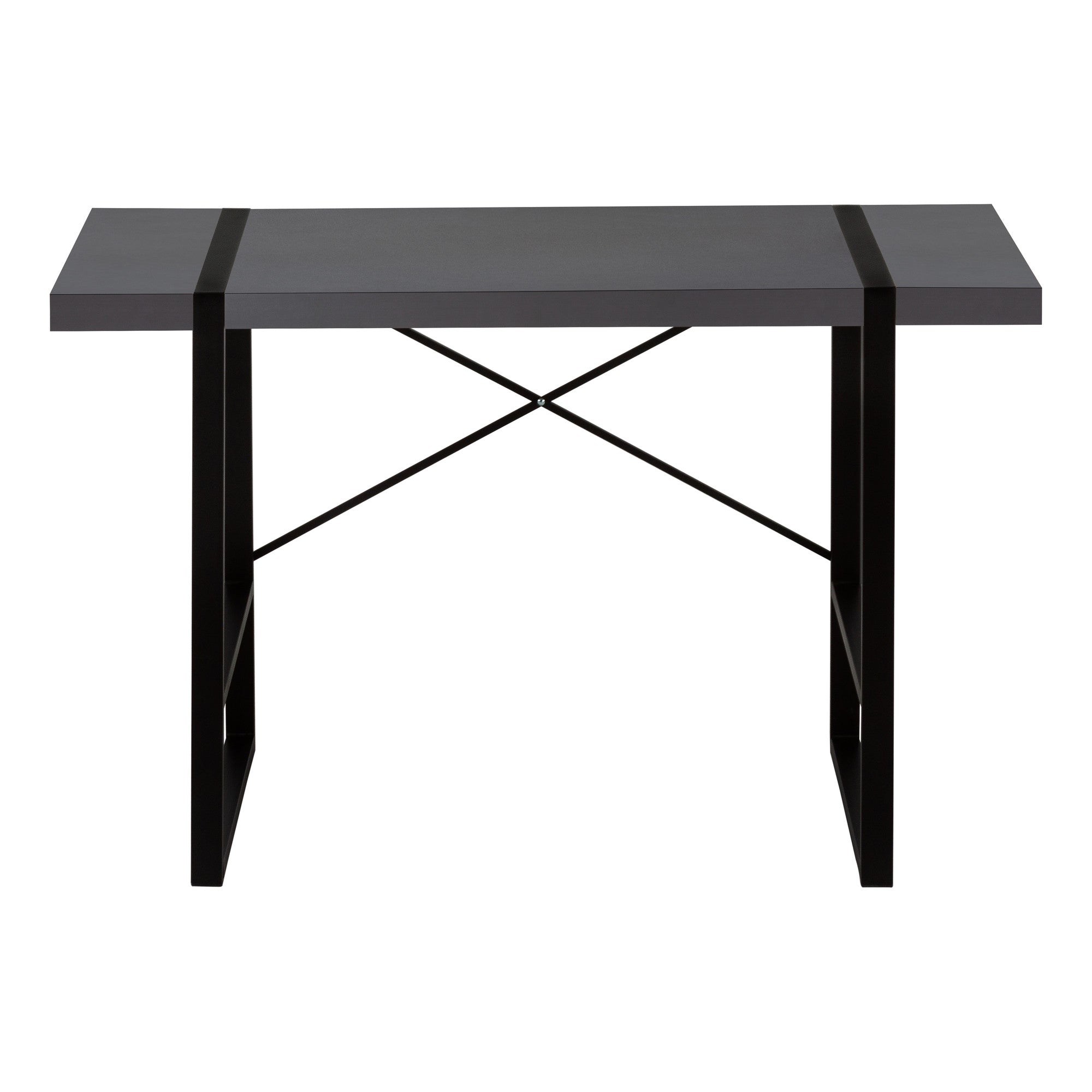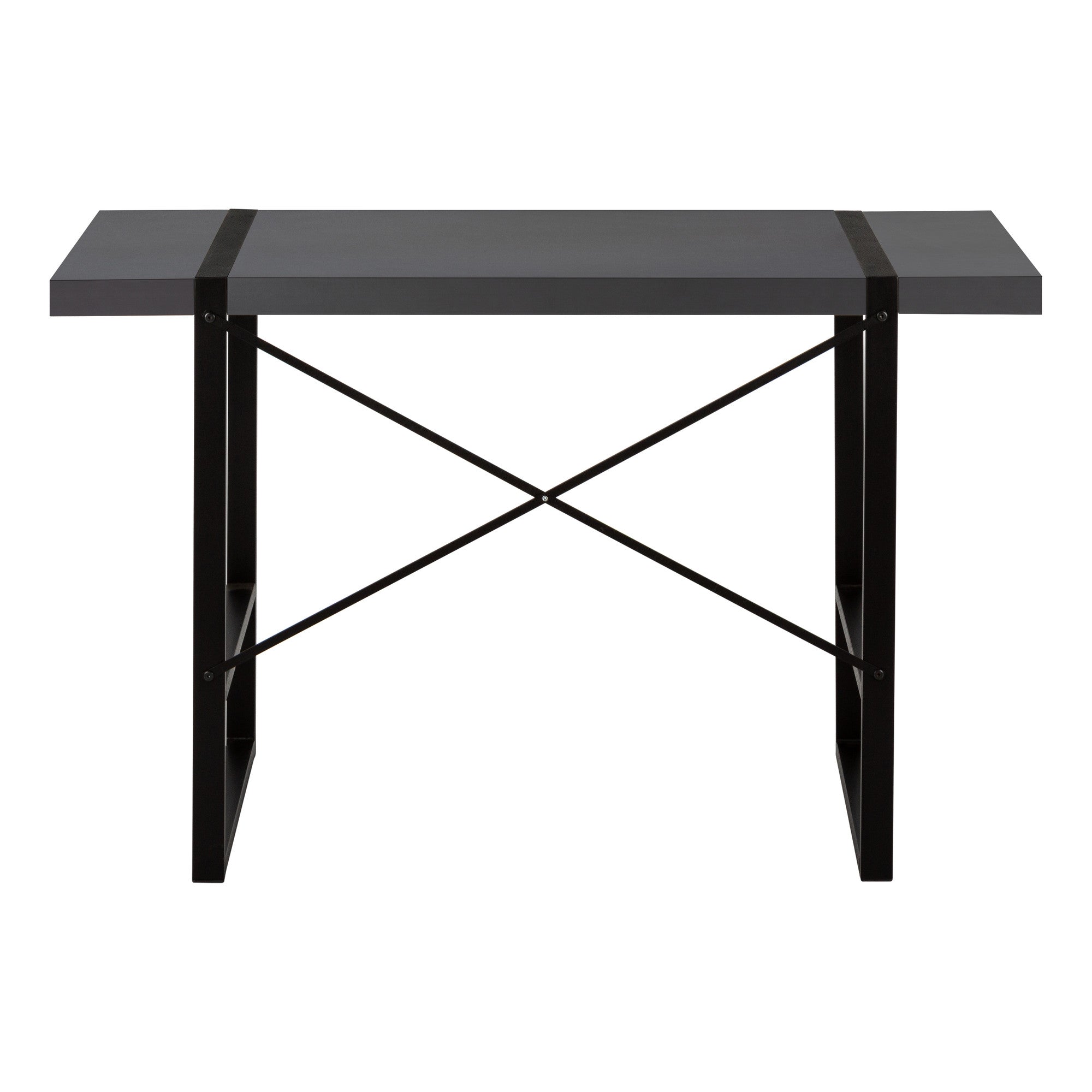 - Robust metal legs in a black finish are incorporated into the desktop for an interesting visual effect