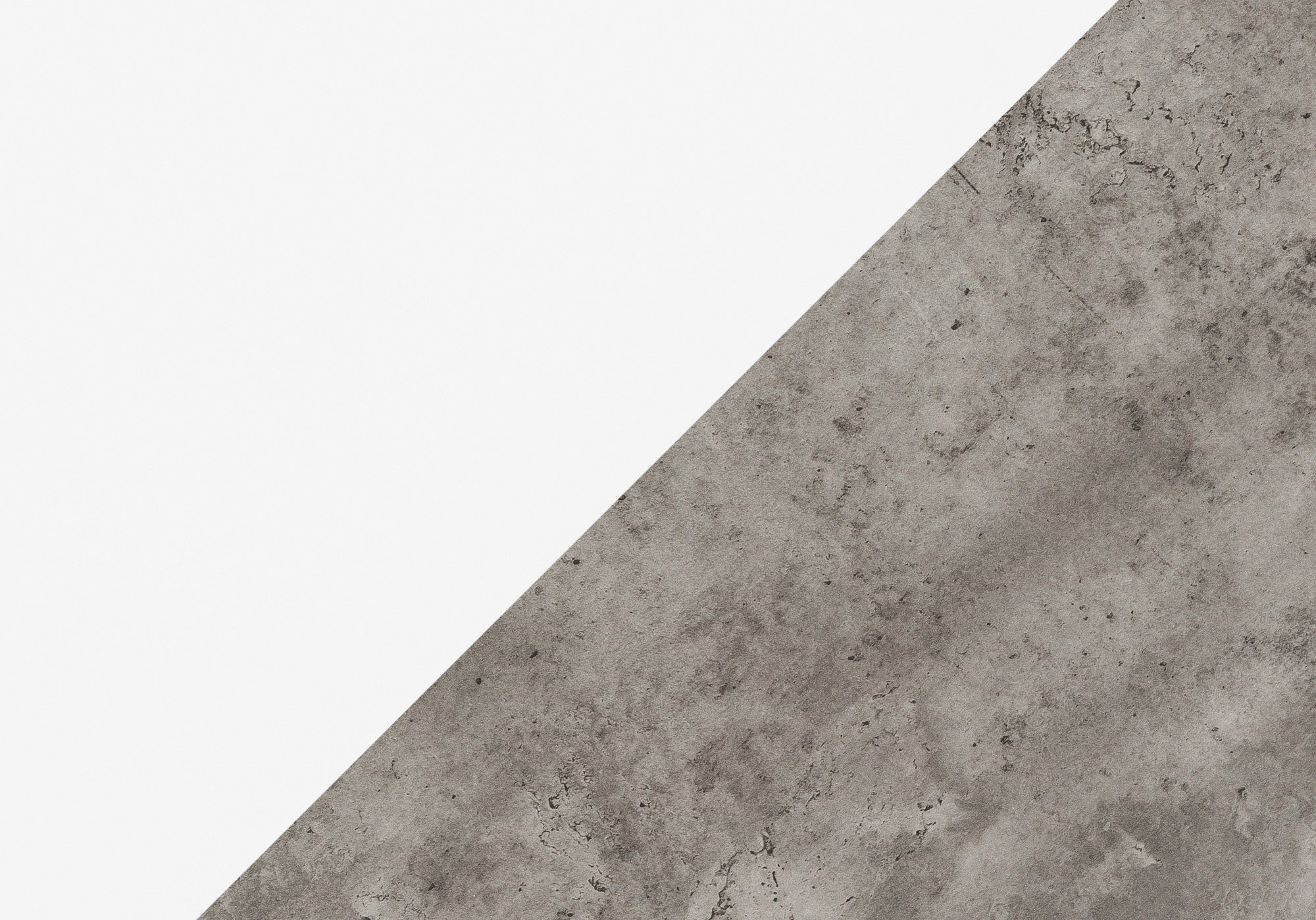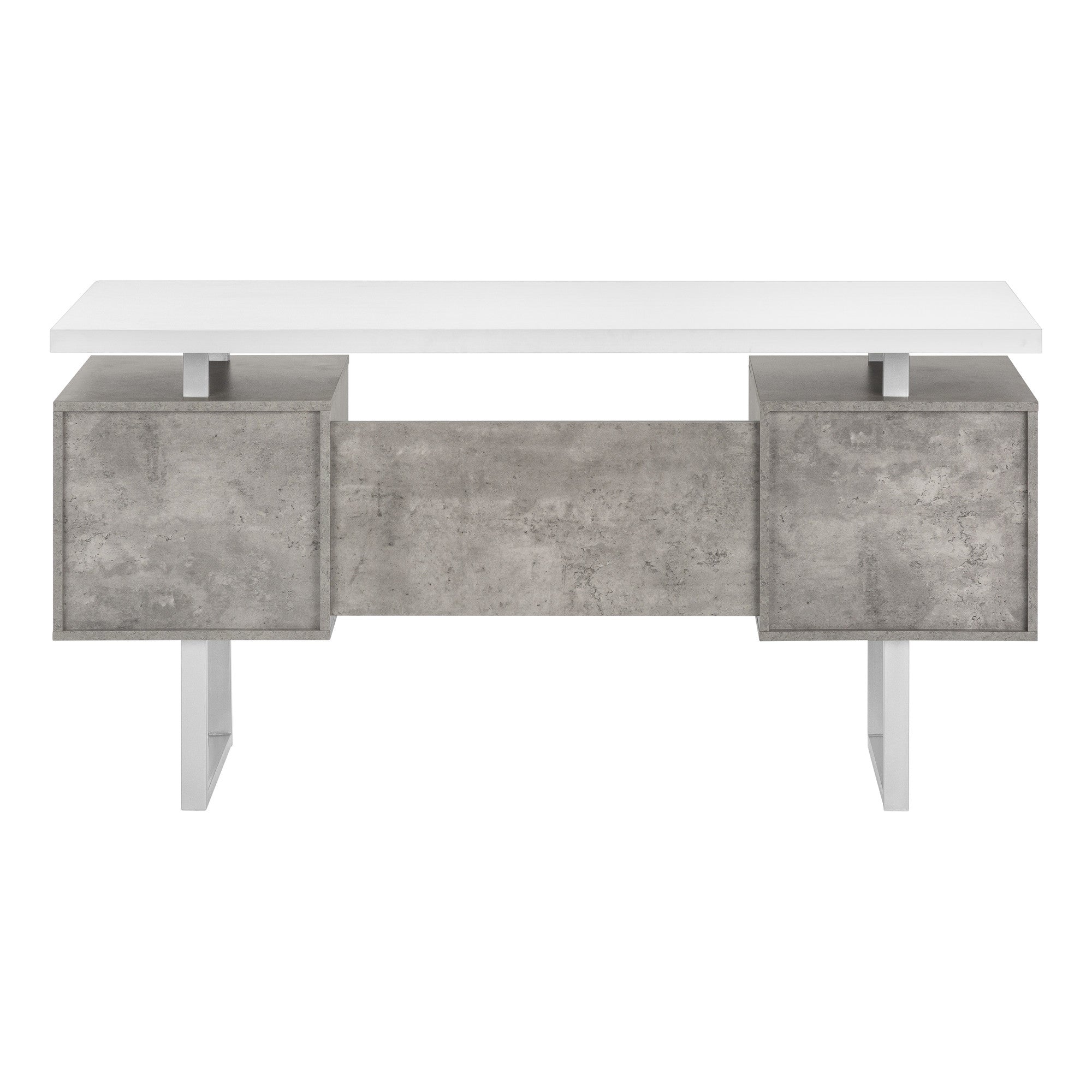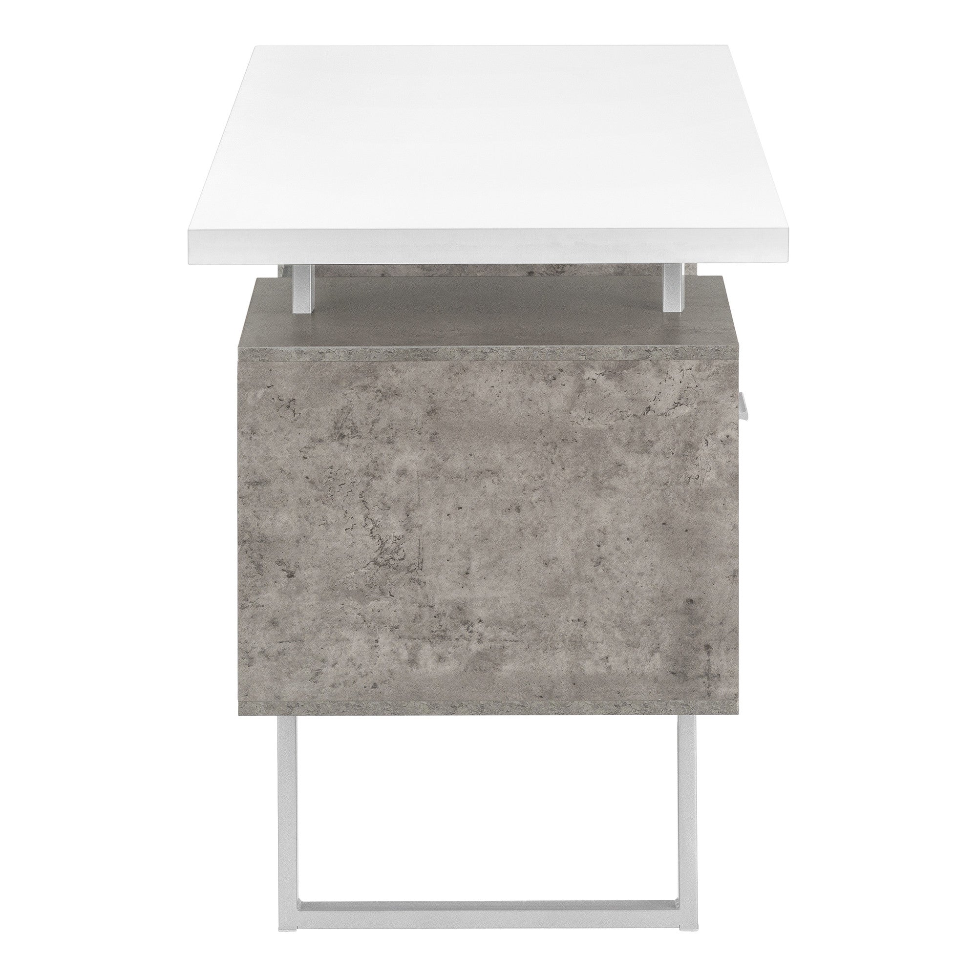 - Computer desk with 3 storage drawers in a grey concrete-look finish and a large, thick-panel floating desktop in a white finish
