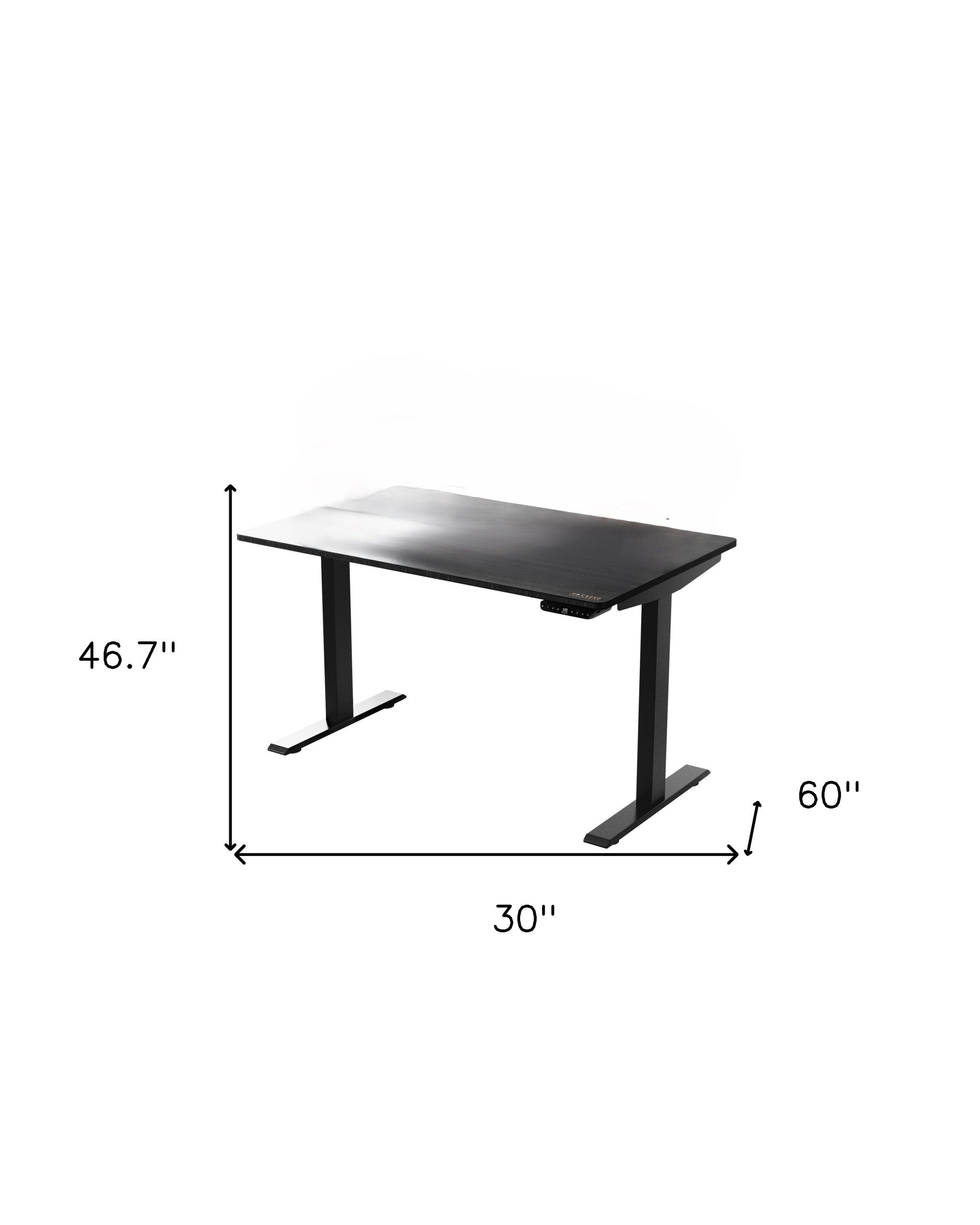 This adjustable height electric desk frame is topped with a beautiful 60x30” black desktop with a premium non-scratch finish that looks great in any office environment.