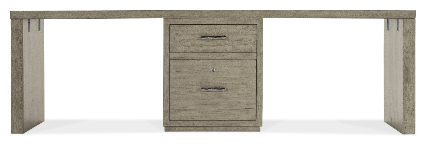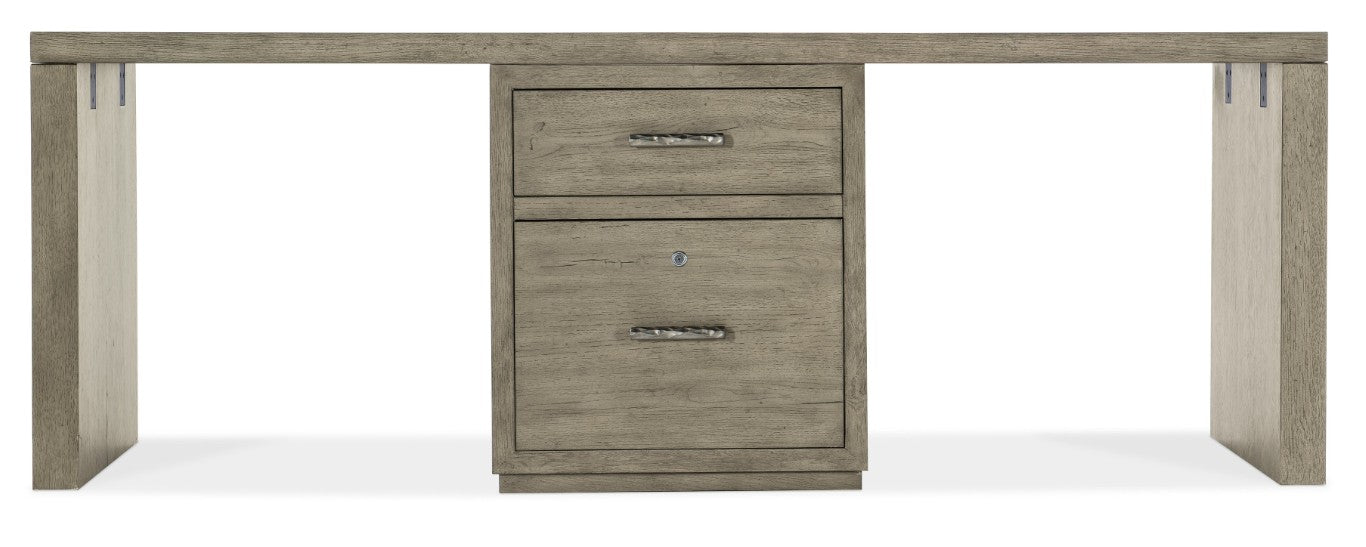 Bring a calm, contemporary presence to your workspace with the Linville Falls desk — an 84-inch-wide writing surface finished in a soft smoked gray Mink that highlights oak veneer grain for natural warmth. Clean lines and practical storage combine in a design that can float in the room, making it ideal for home offices, executive suites, or multi-purpose living areas where both style and functionality matter.