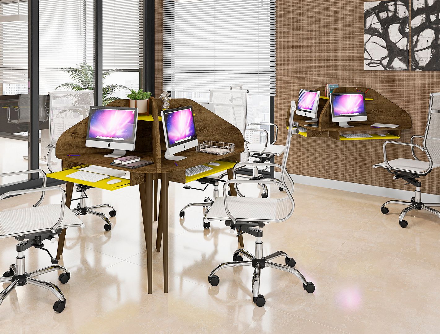 Description for 229BMC94 Manhattan Comfort Bradley Corner Desk with Keyboard Shelf in Rustic Brown and Yellow