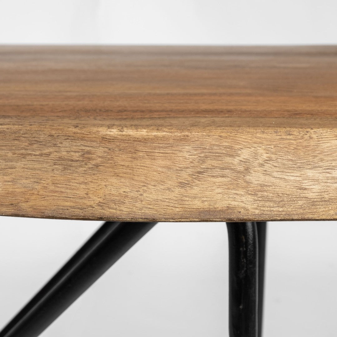- Finish & Color: Natural wood grain top complemented by a black iron base for a striking two-tone aesthetic