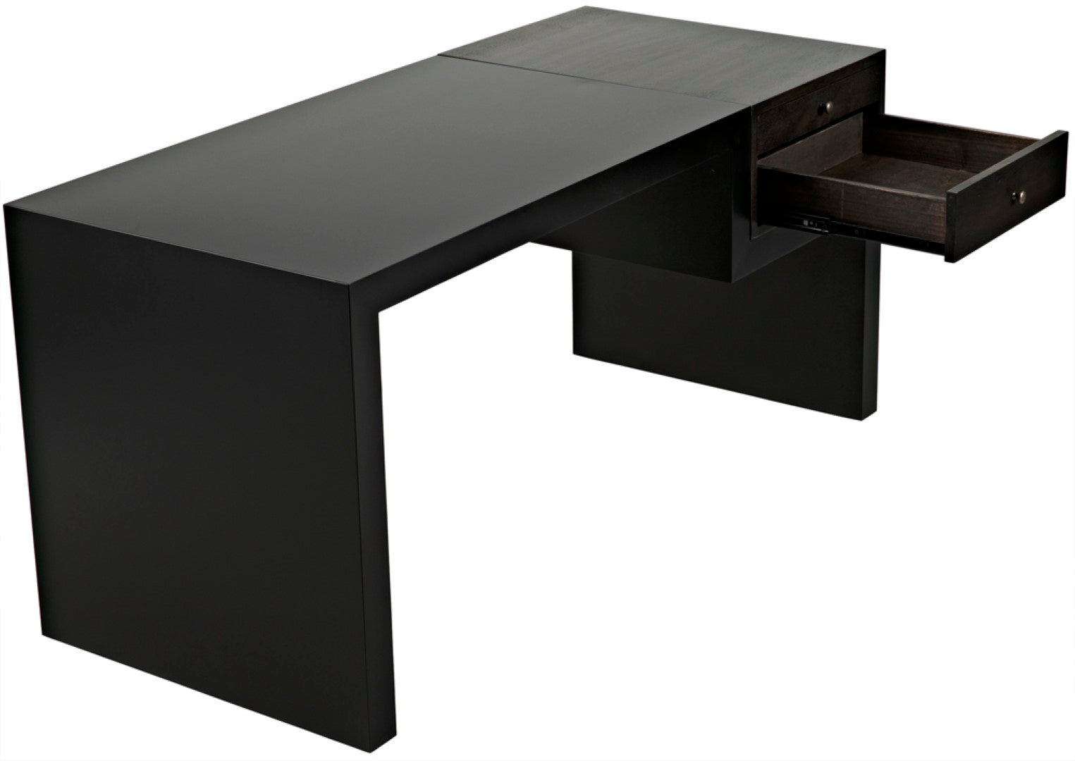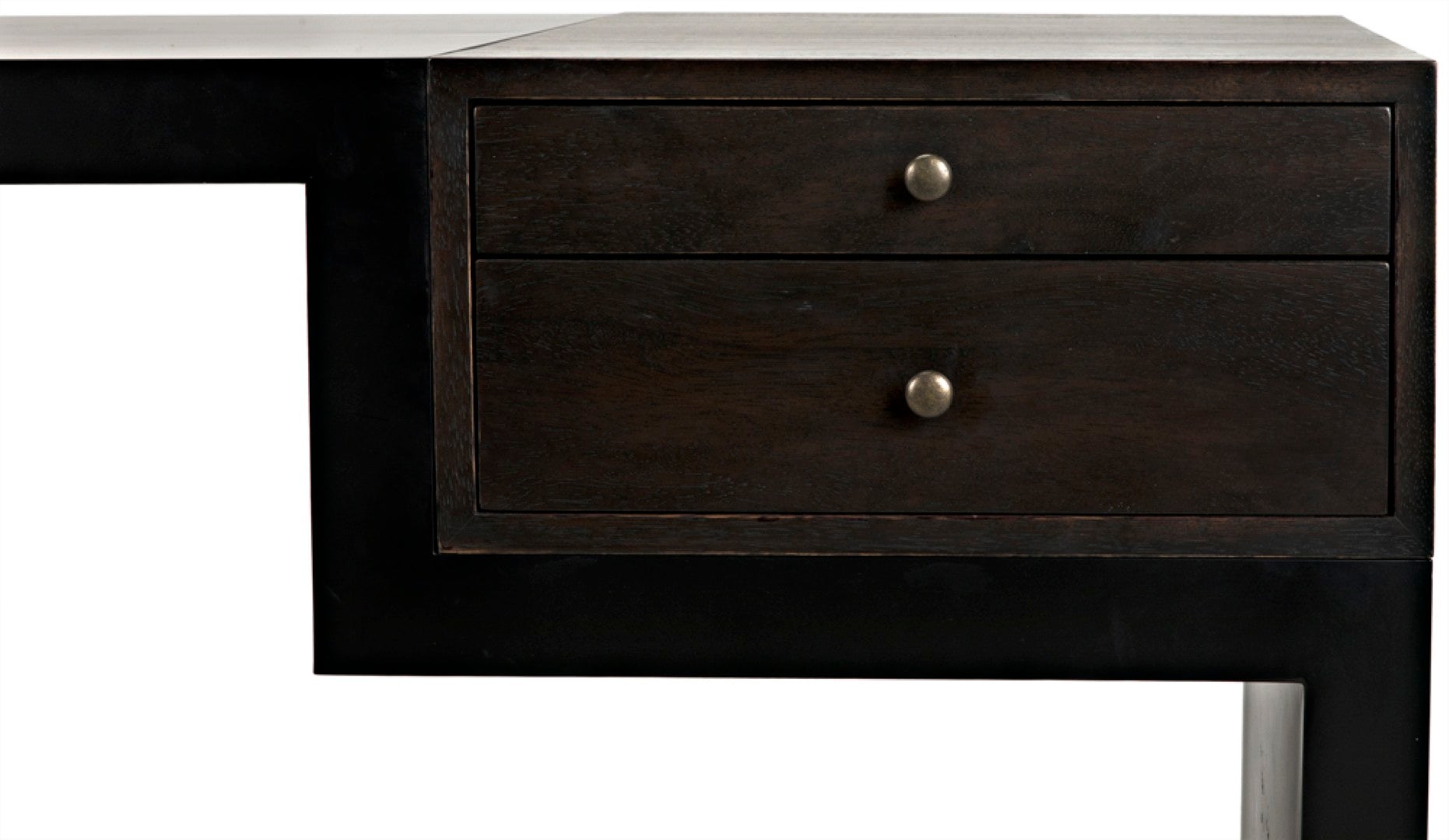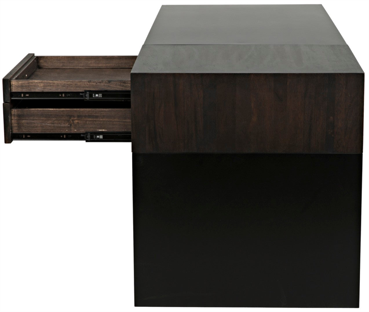 Streamlined and sturdy, this desk blends industrial character with warm walnut accents to create a versatile workspace that complements modern and transitional interiors. Its pared-down silhouette and handcrafted metal frame deliver durability and visual clarity, while ebony walnut drawers add refined storage and texture.