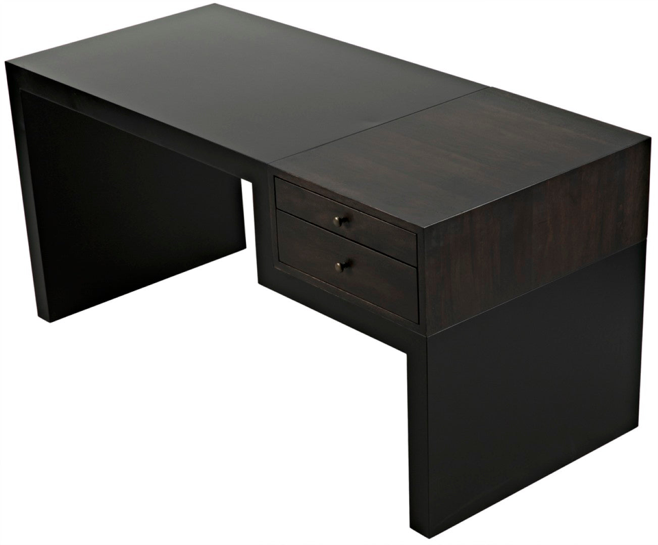 - Surface & storage: Ebony walnut and veneer top with integrated walnut drawers for concealed organization