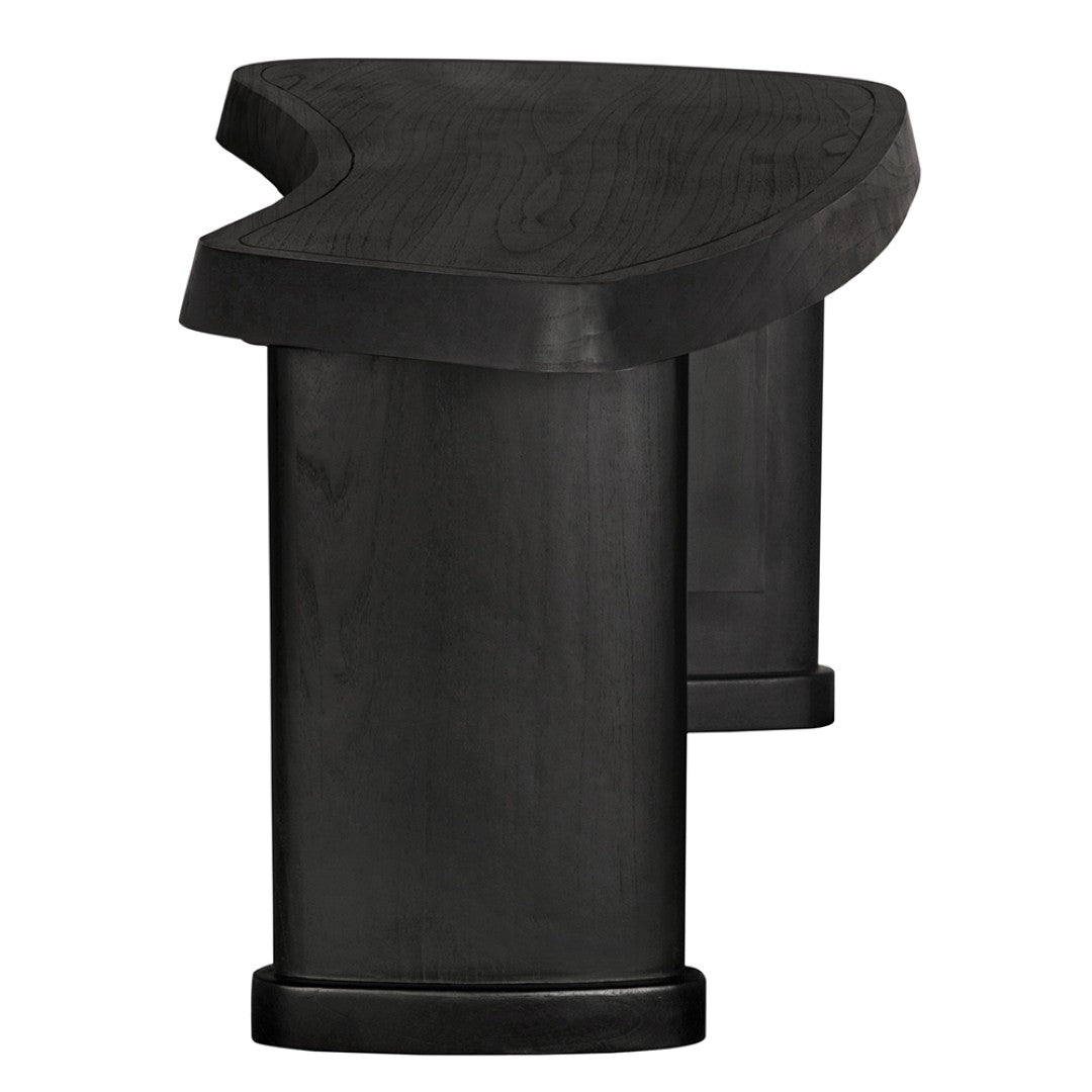 - Materials & Finish: Crafted from solid mindi wood with a charcoal black finish for depth and texture; accented with brass hardware for a subtle luxe touch