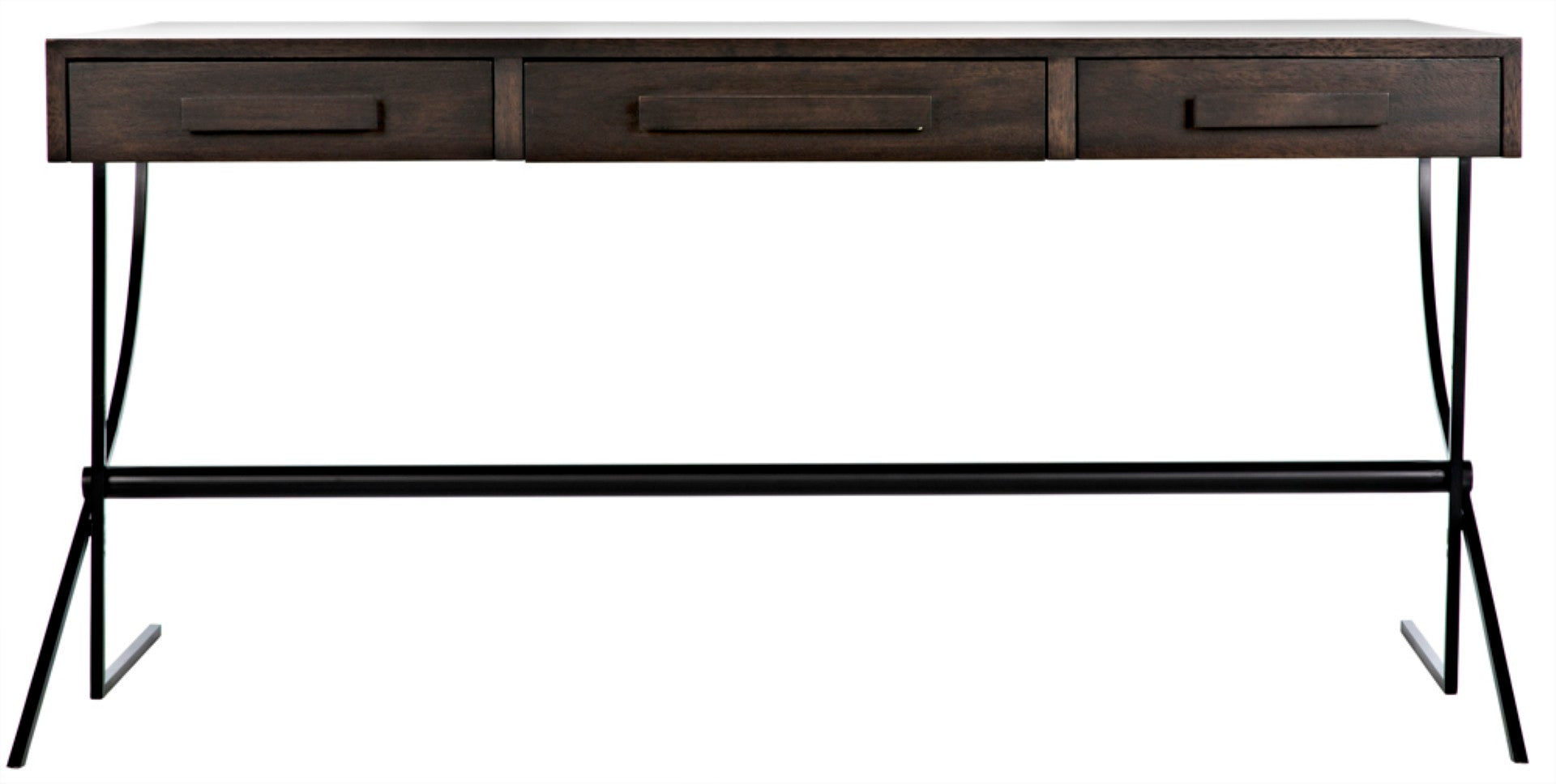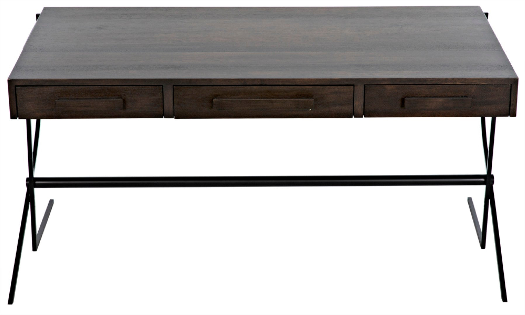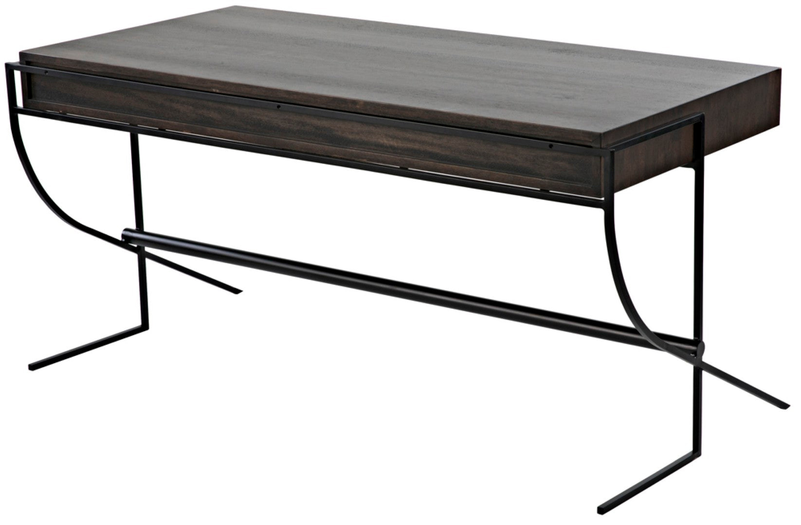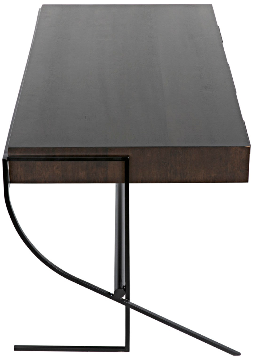 Elevate your workspace with a timeless writing desk that blends traditional craftsmanship and contemporary durability. Rich ebony-walnut surfaces and a matte black iron base create a refined contrast, while thoughtful storage and sturdy construction make this desk as functional as it is elegant—perfect for home offices, studies, or executive settings.