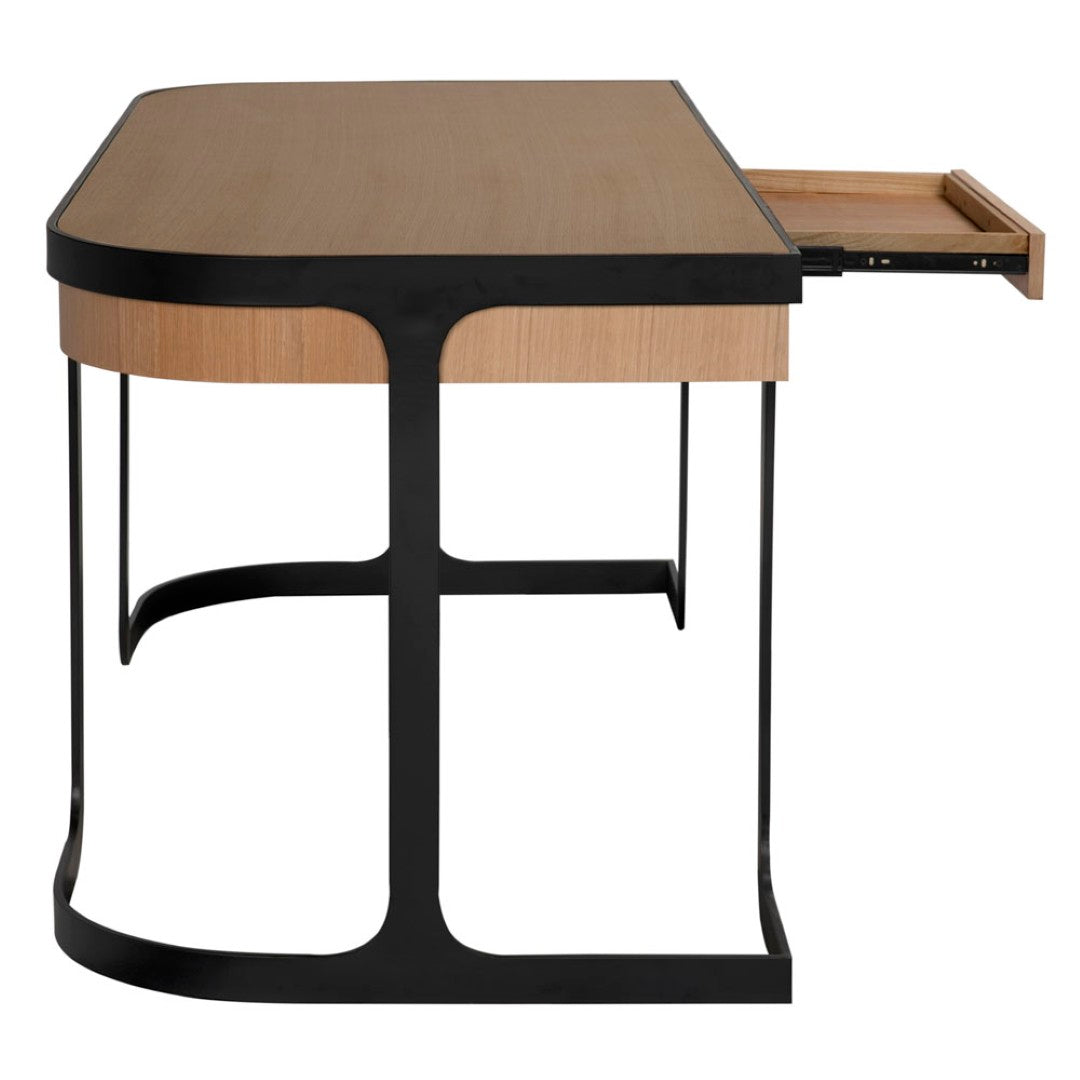 Deliberately blending warm, natural wood with industrial steel, this desk brings refined functionality and modern style to home offices or workspaces. The Hamilton Desk offers a spacious work surface, durable construction, and a minimalist profile that complements a variety of interiors—from Scandinavian and mid-century to contemporary industrial.
