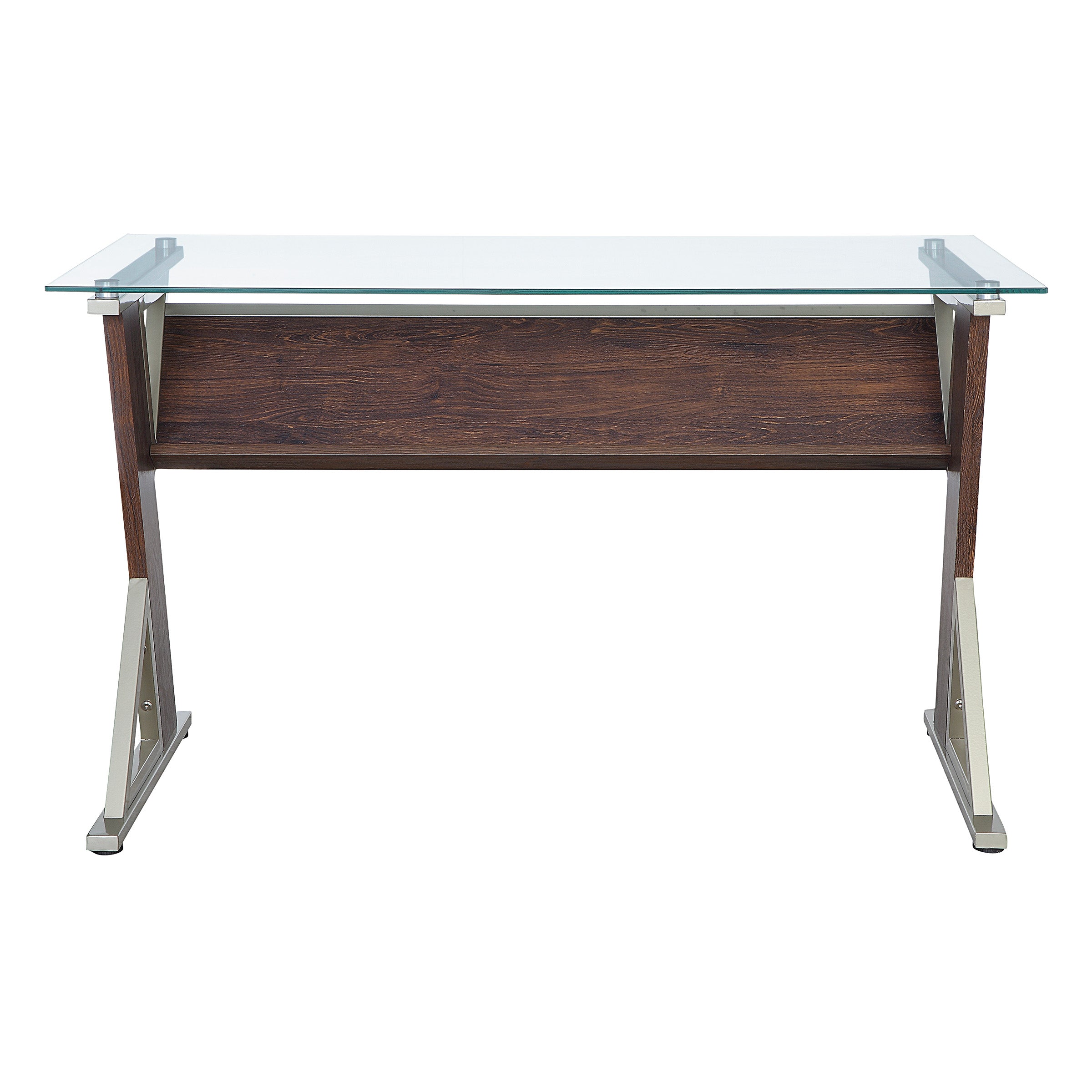 - Attractive 8mm tempered glass desktop with chrome standoff hardware