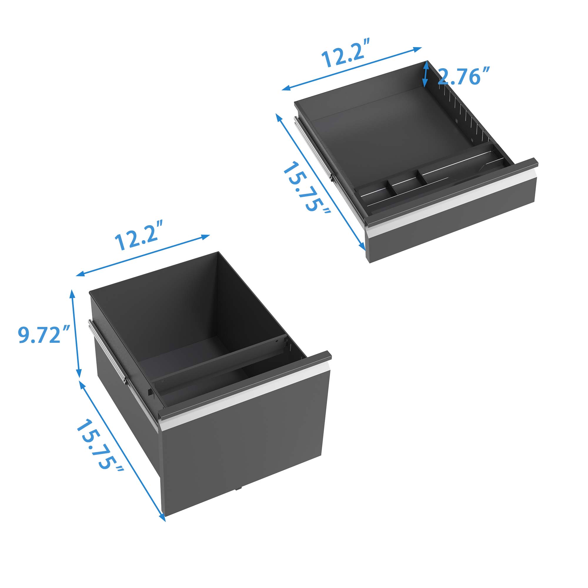 - Versatile storage layout: Two top stationery drawers with a removable pencil tray for small office supplies; deep bottom drawer designed for hanging file folders (Letter, Legal, and A4).