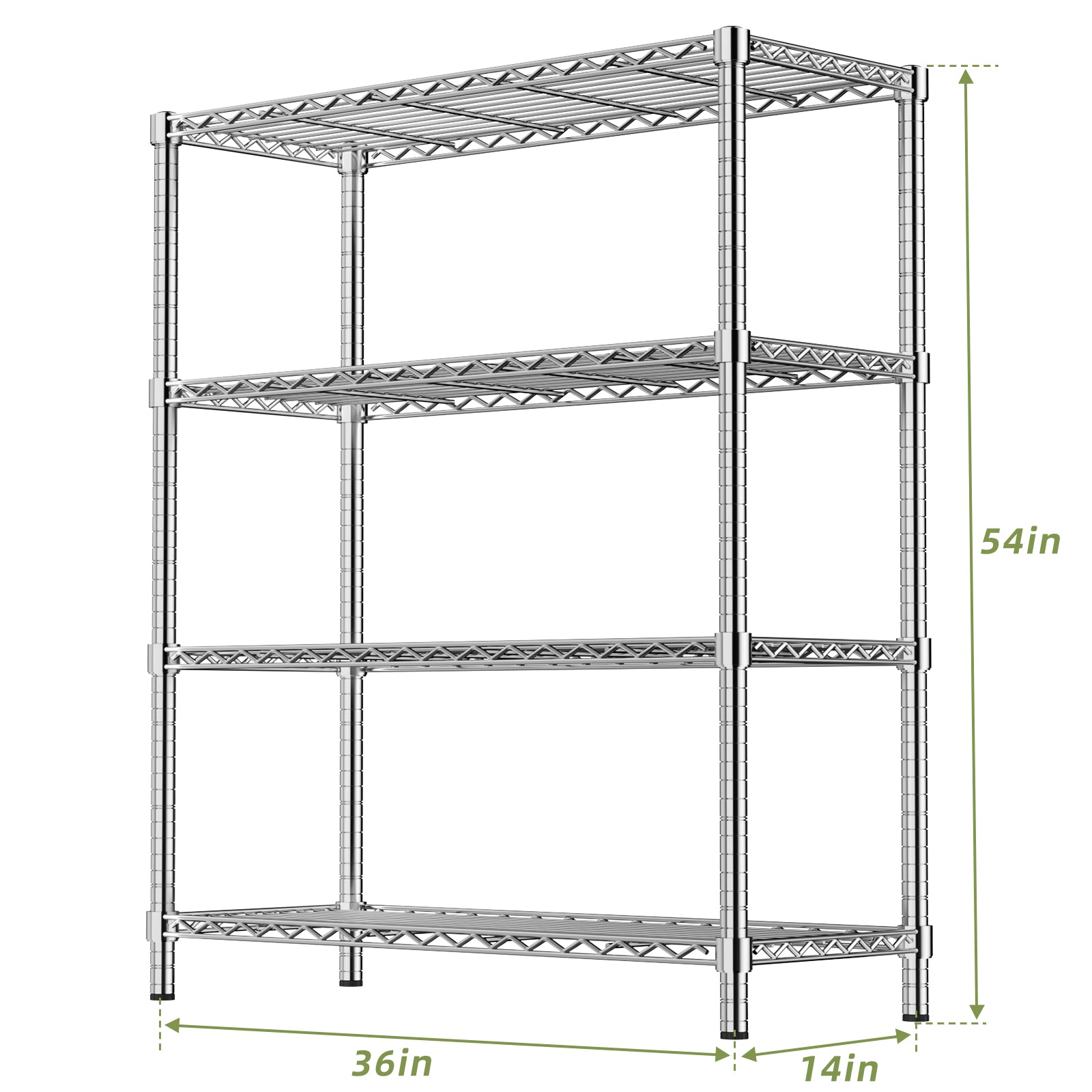 Keep your home, garage, or workspace organized with a durable, heavy‑duty shelving solution that combines high load capacity, rust resistance, and flexible storage options. This 4-tier chrome wire rack is designed for easy assembly and everyday use, offering open-air shelving that keeps items visible and airflow circulating to prevent moisture buildup.