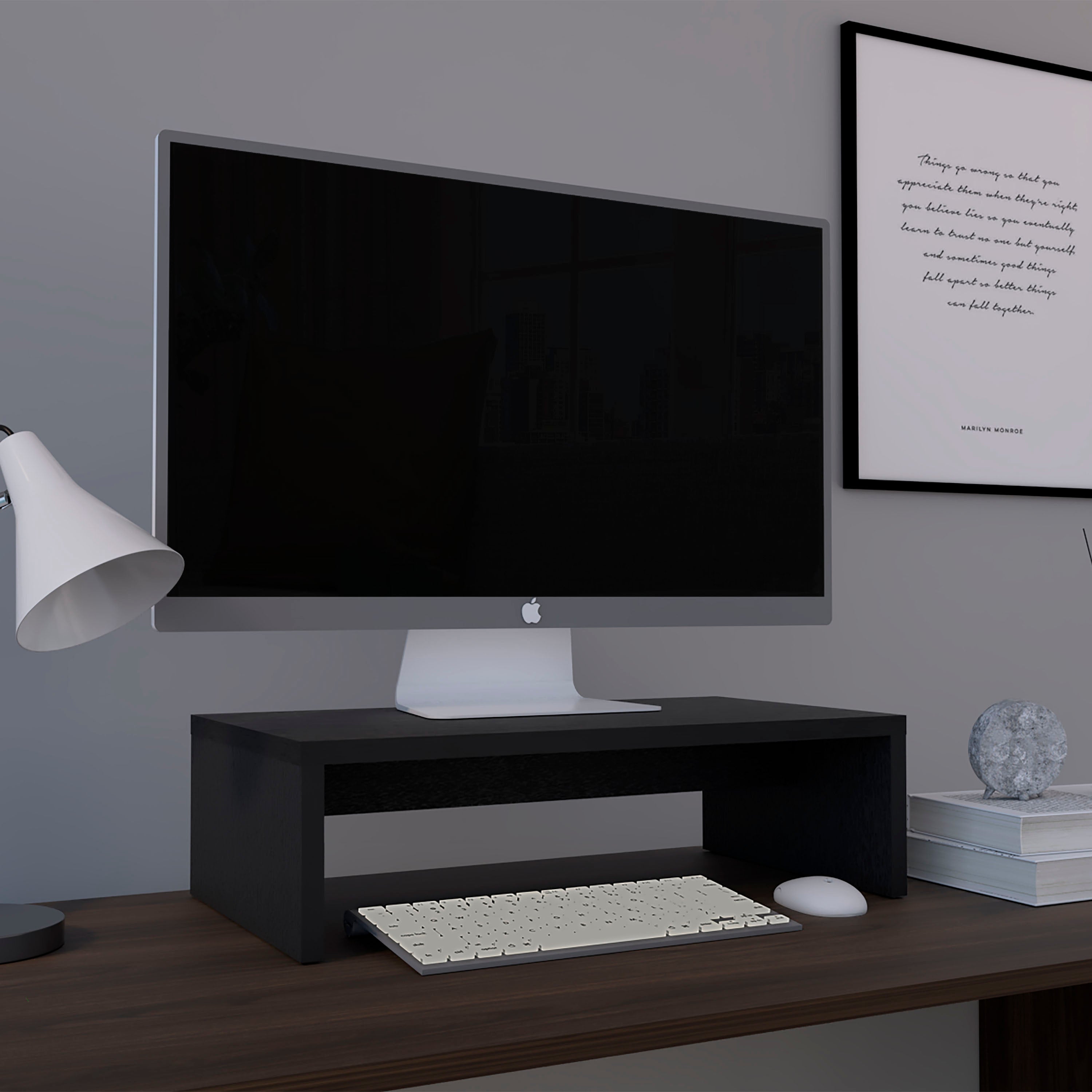 Give your workspace an instant upgrade with a sleek, sturdy riser that elevates your monitor or laptop to a more comfortable viewing height while reclaiming valuable desk space. Built for home and office use, this versatile stand improves posture, reduces clutter, and supports a range of devices up to 50 lbs.