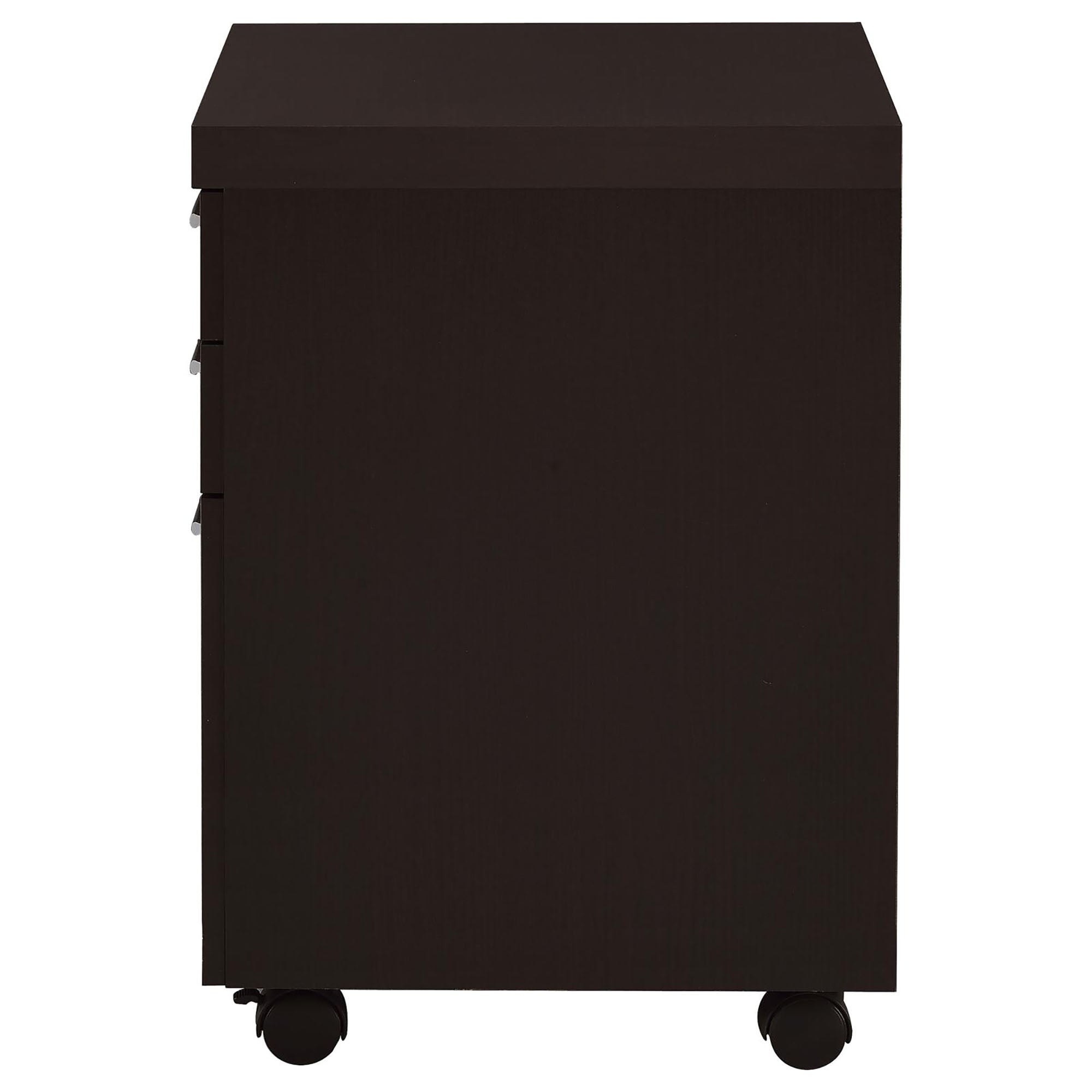 A sleek, space-saving solution for home offices and studios, this cappuccino-finish three-drawer file cabinet combines modern lines with practical storage. Its compact footprint and mobile design keep paperwork organized and accessible while complementing a range of décor styles.
