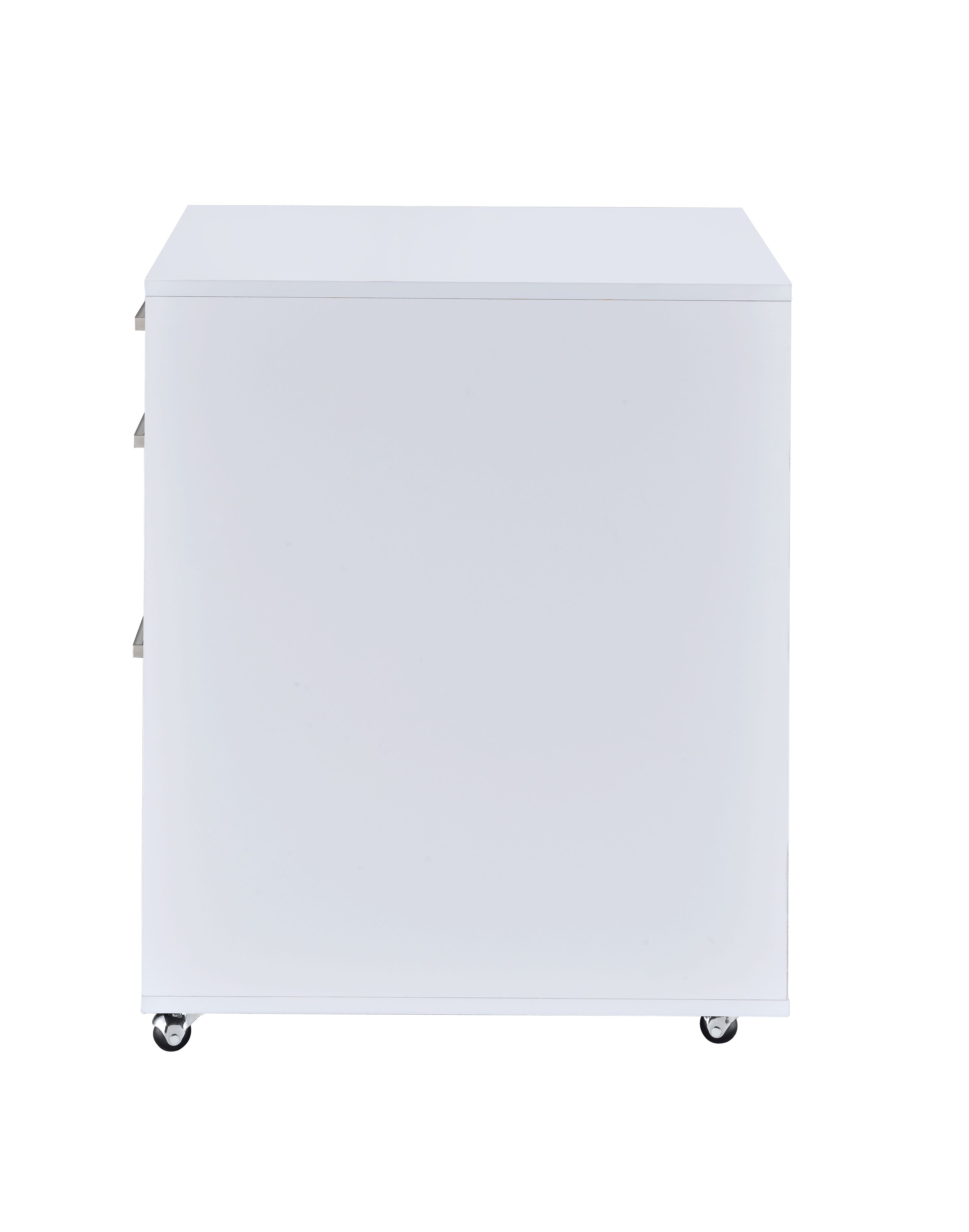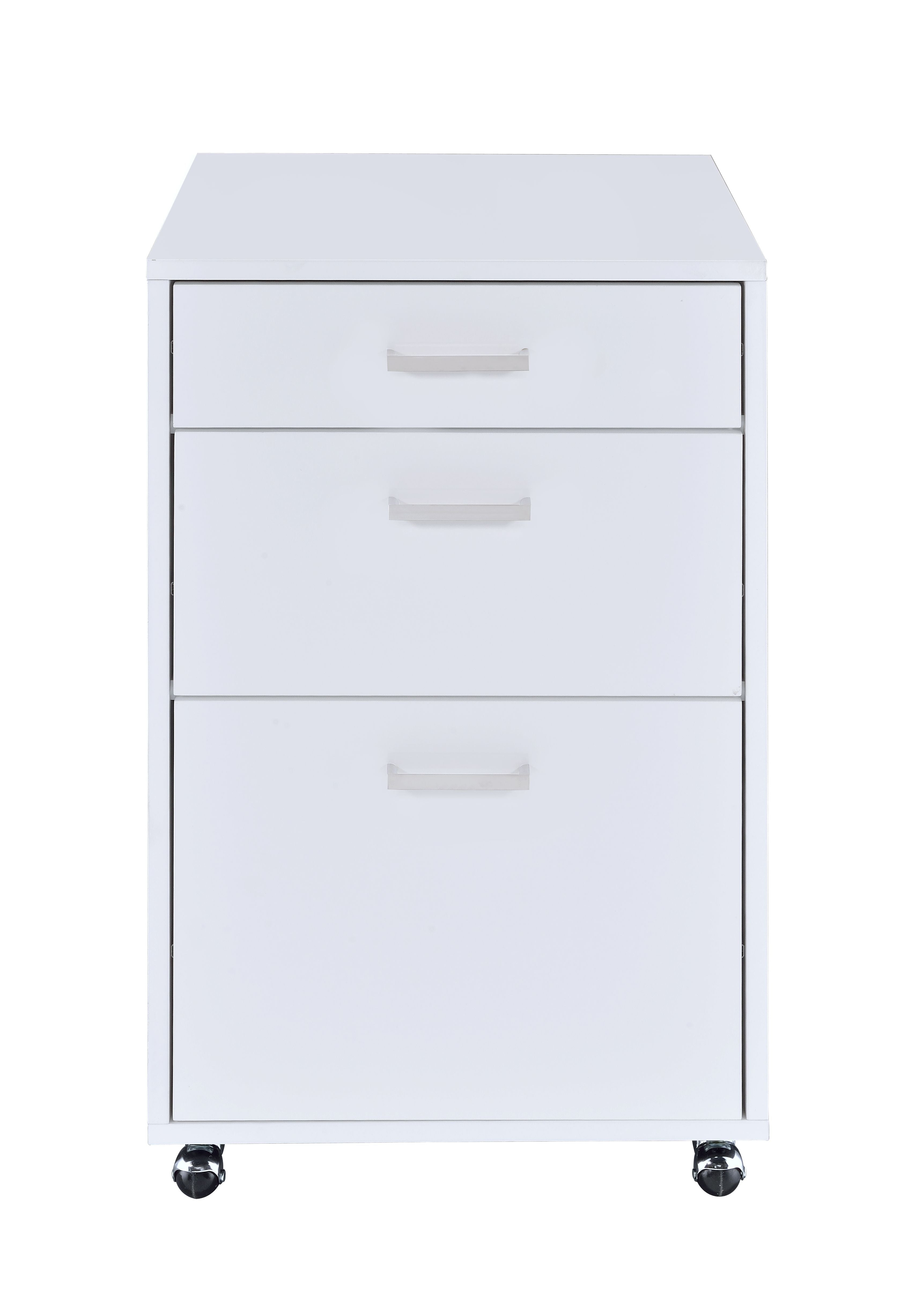 Keep your workspace organized in style with the Coleen White High Gloss & Chrome Finish File Cabinet. This sleek, contemporary cabinet combines glossy white surfaces and chrome accents for a modern look that complements home offices and professional environments. Thoughtfully designed storage and smooth mobility make it a practical yet attractive addition to any workspace.