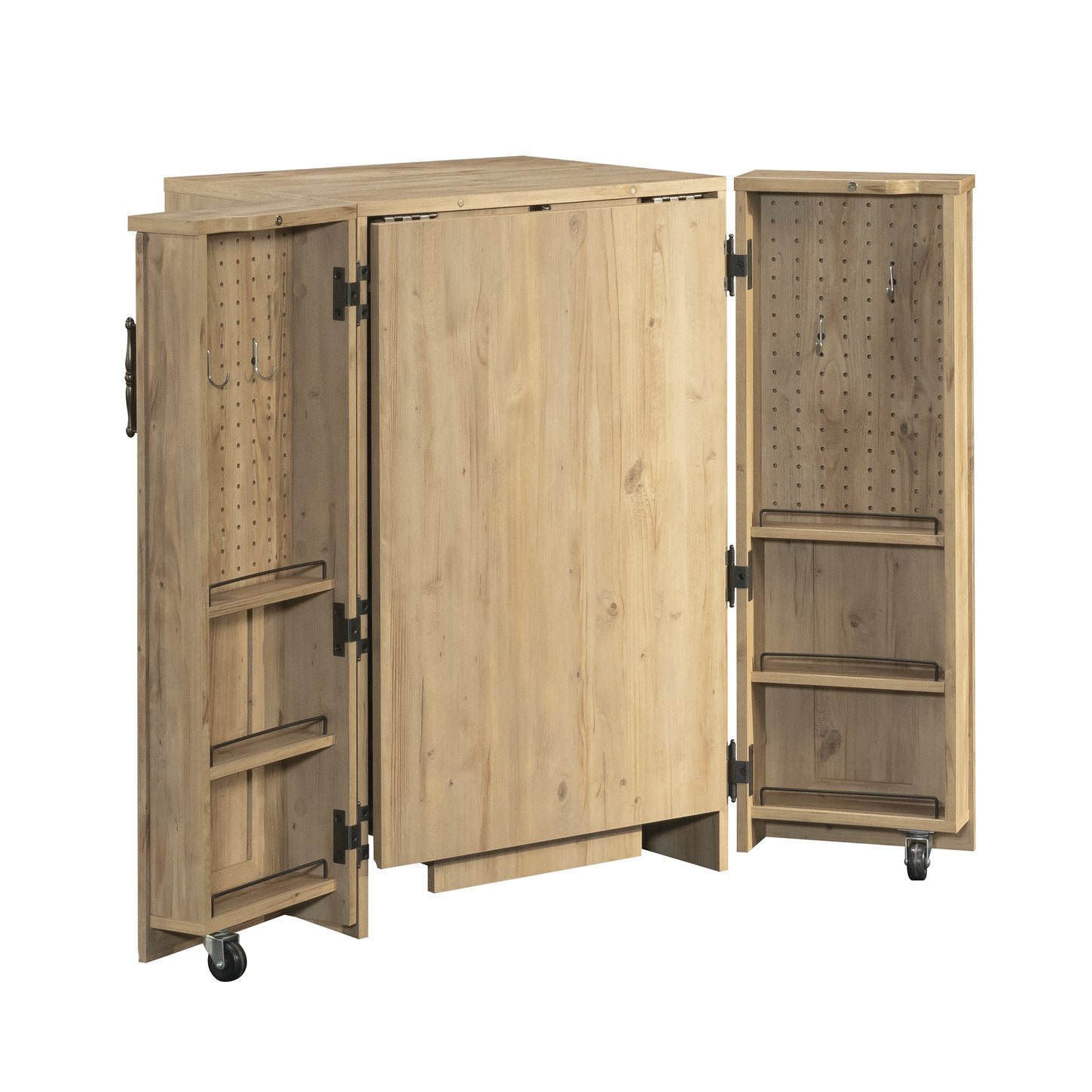 Organize your creative space with this versatile craft station finished in a warm khaki pine tone. Designed for small rooms and multi-use areas, it combines a compact footprint with expandable workspace and flexible storage so you can keep supplies tidy and projects underway.