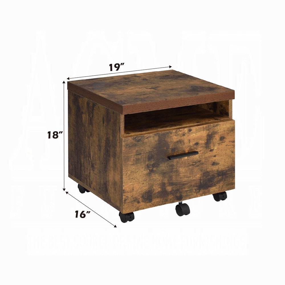 This compact industrial-style file cabinet combines rugged black metal framing with a weathered oak finish to bring modern, functional flair to your home office. Designed for durability and mobility, it offers organized storage with a drawer, open shelf and smooth-rolling casters—ideal for small spaces, apartments, or as an accent piece in a larger workspace.