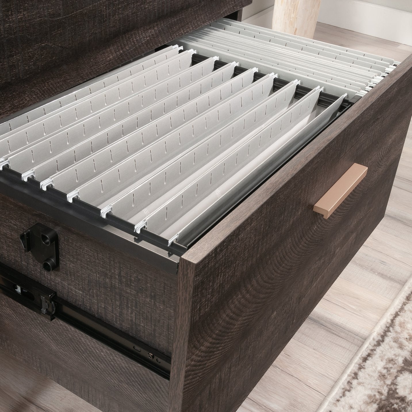 - Capacity & Compatibility: Full-extension drawer slides accommodate both letter and legal hanging files for easy access and organization.