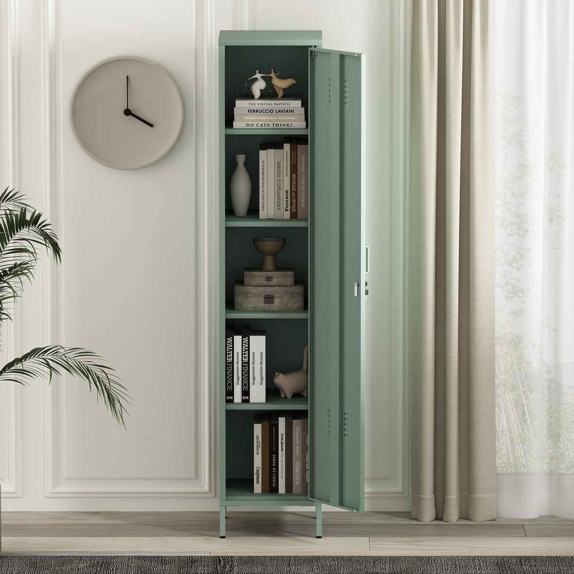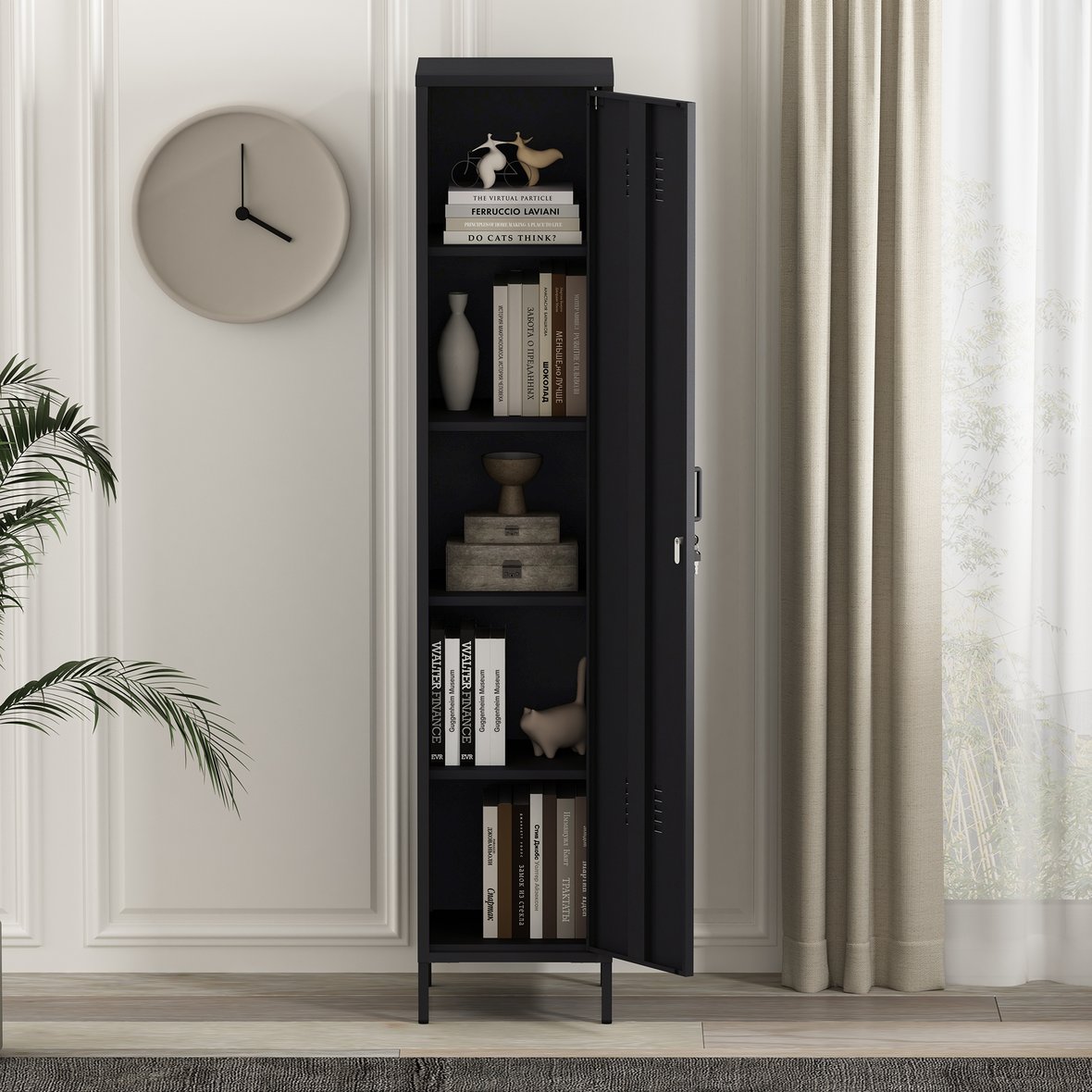 - Modern Single Locker Style Storage Cabinet Perfect for Garage Use.