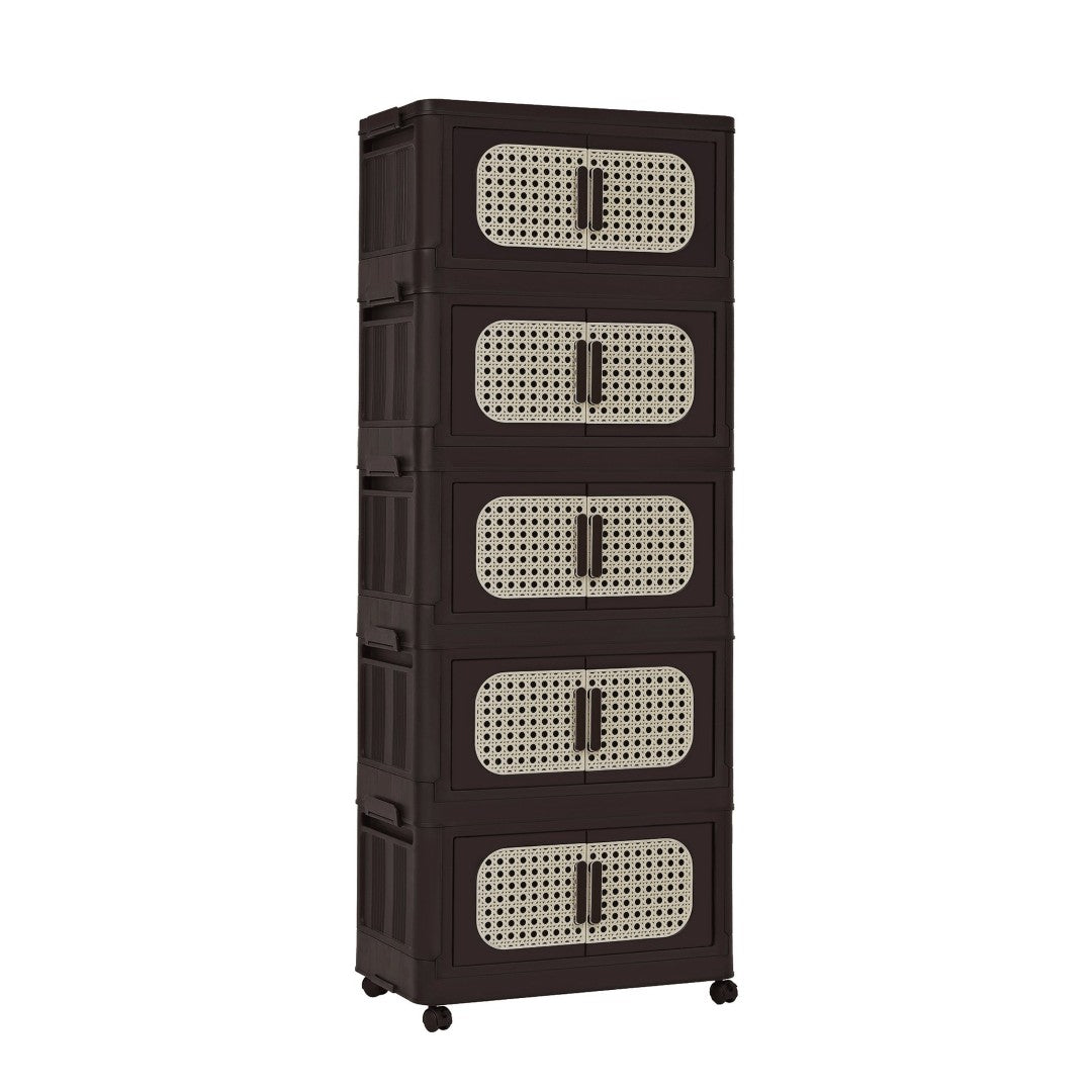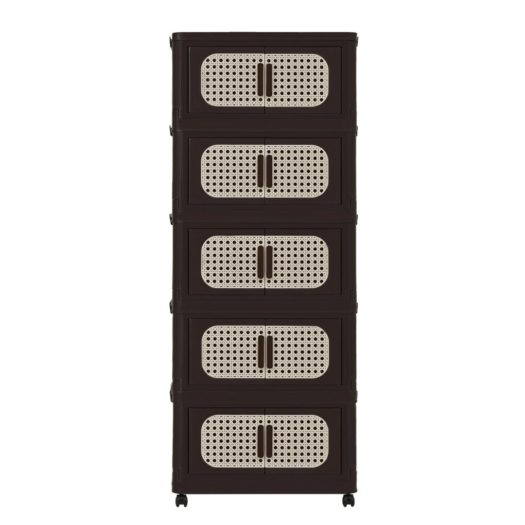 Keep your home organized with this versatile retro-brown folding storage cabinet. Designed for easy assembly and everyday use, it offers five tiers of layered storage, smooth mobility, and a space-saving collapsible design—ideal for living rooms, bedrooms, kitchens, dorms, and workshops. The magnetic door keeps contents concealed and tidy while durable, odor-free PP construction ensures long-lasting, safe performance.