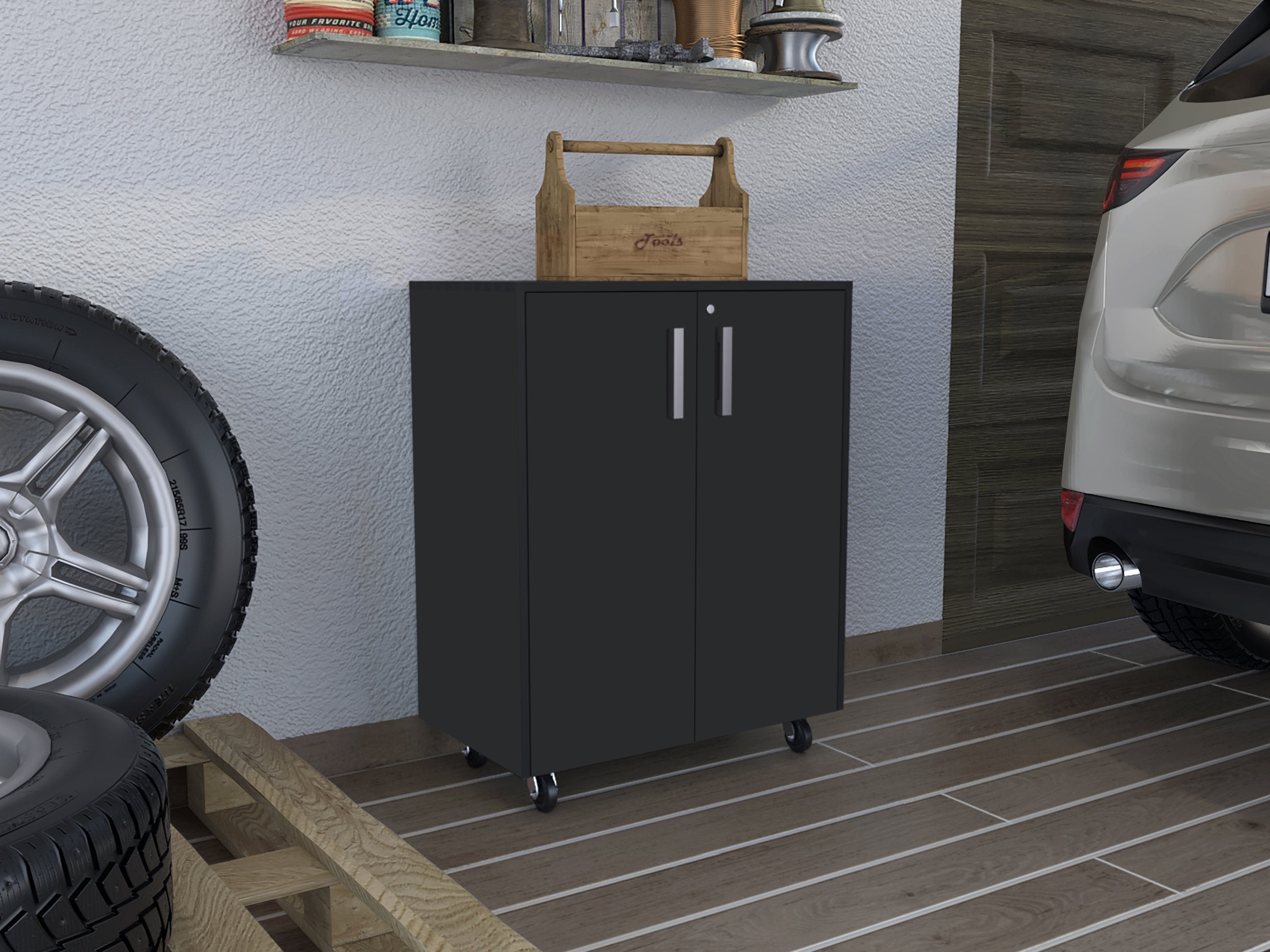 Keep your space organized with this sleek, mobile storage cabinet finished in Black Wengue. Designed for versatility in offices, bedrooms, or common areas, it combines practical storage with a modern look. The cabinet’s double doors and internal shelf make sorting and accessing items simple, while durable casters let you reposition the unit quickly as needs change.