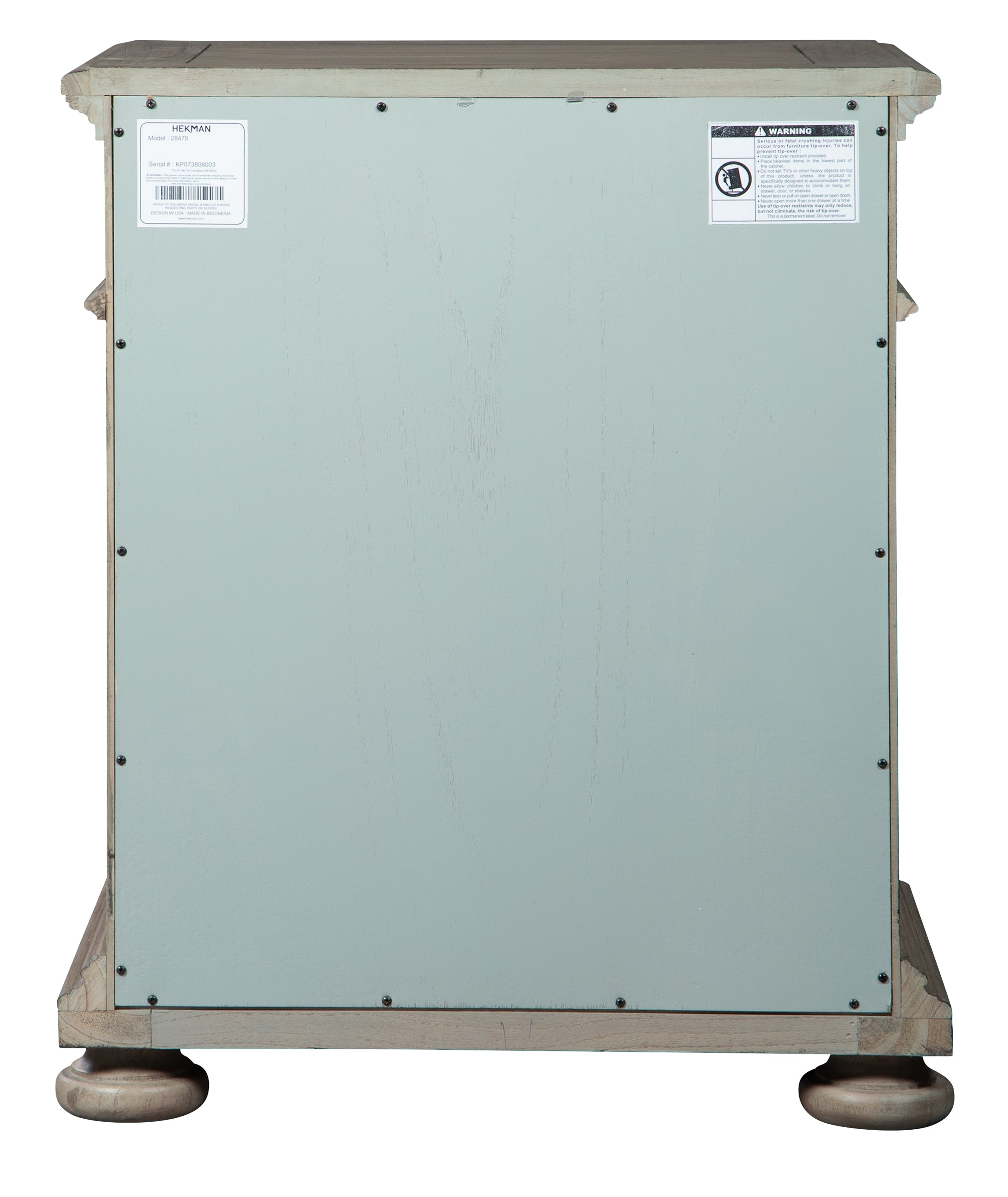 - Two file drawers with metal slides. The top two drawer fronts comprise the top file drawer.