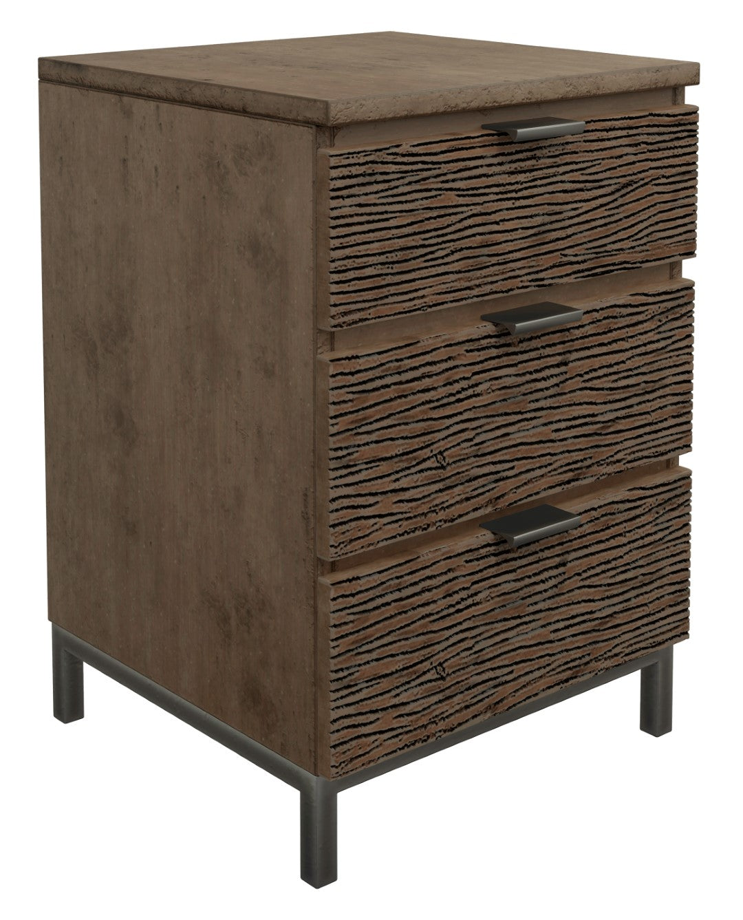 - Two-drawer filing cabinet with flowing irregular reeded carving across the drawer faces