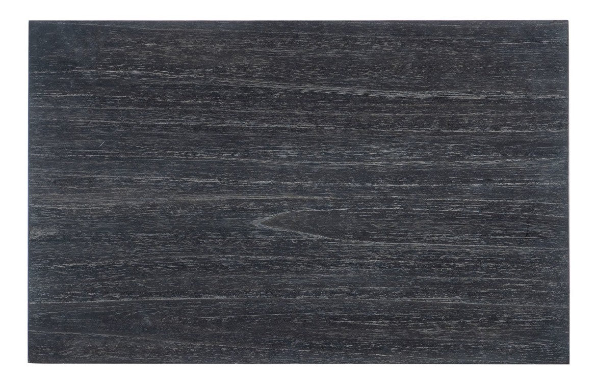 - Black wood finish with wood grain showing through