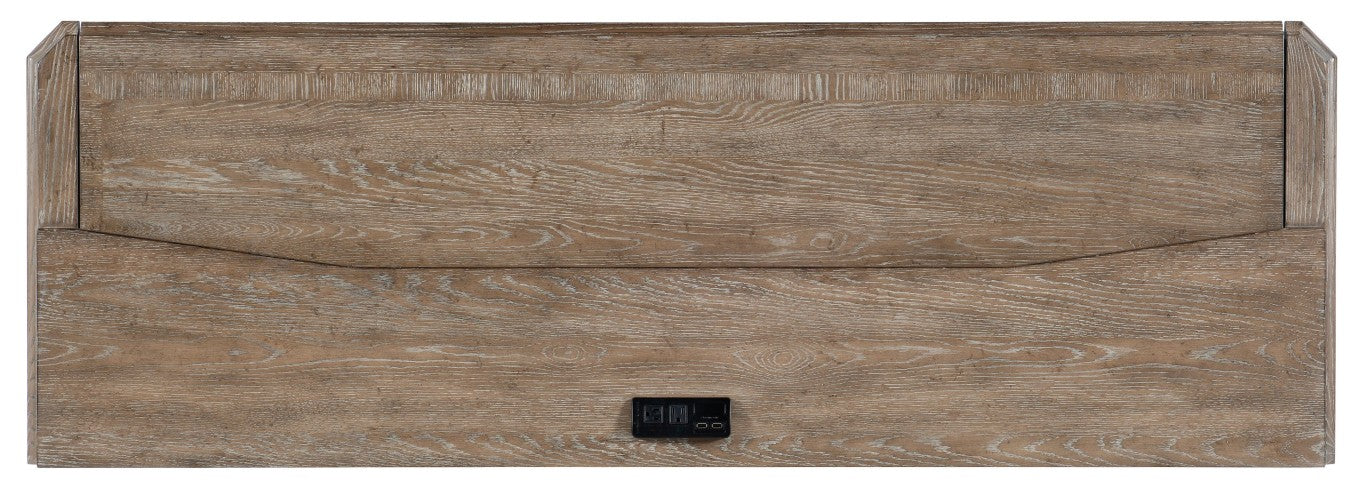 Blending traditional craftsmanship with practical, modern features, the Sutter Computer Credenza offers a refined home-office solution that balances style and function. Crafted from cathedral oak veneers with a distressed Claro (medium clear oak) finish and champagne-colored hardware, this credenza delivers generous storage, smooth operation, and thoughtful details—like a pull-out work surface and integrated power supply—to keep your workspace organized and efficient.