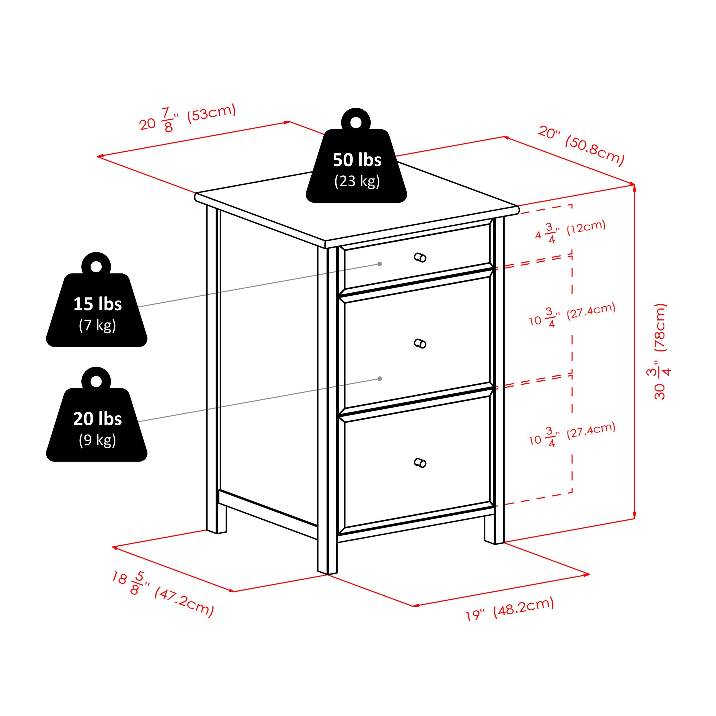 The Delta File Cabinet is a practical and handsome way to store your important files and paperwork. Finished in a rich Walnut, it will enhance any professional or home office space. Two lower drawers offer ample room for both legal and letter-sized files, and the top drawer is perfect for smaller items, such as pens, pads, envelopes, and more. It can also be used without the file rods as a storage cabinet to keep office supplies within easy reach. Overall dimensions are 30.7"H x 20.8"W x 20.2"D. Made of composite wood.