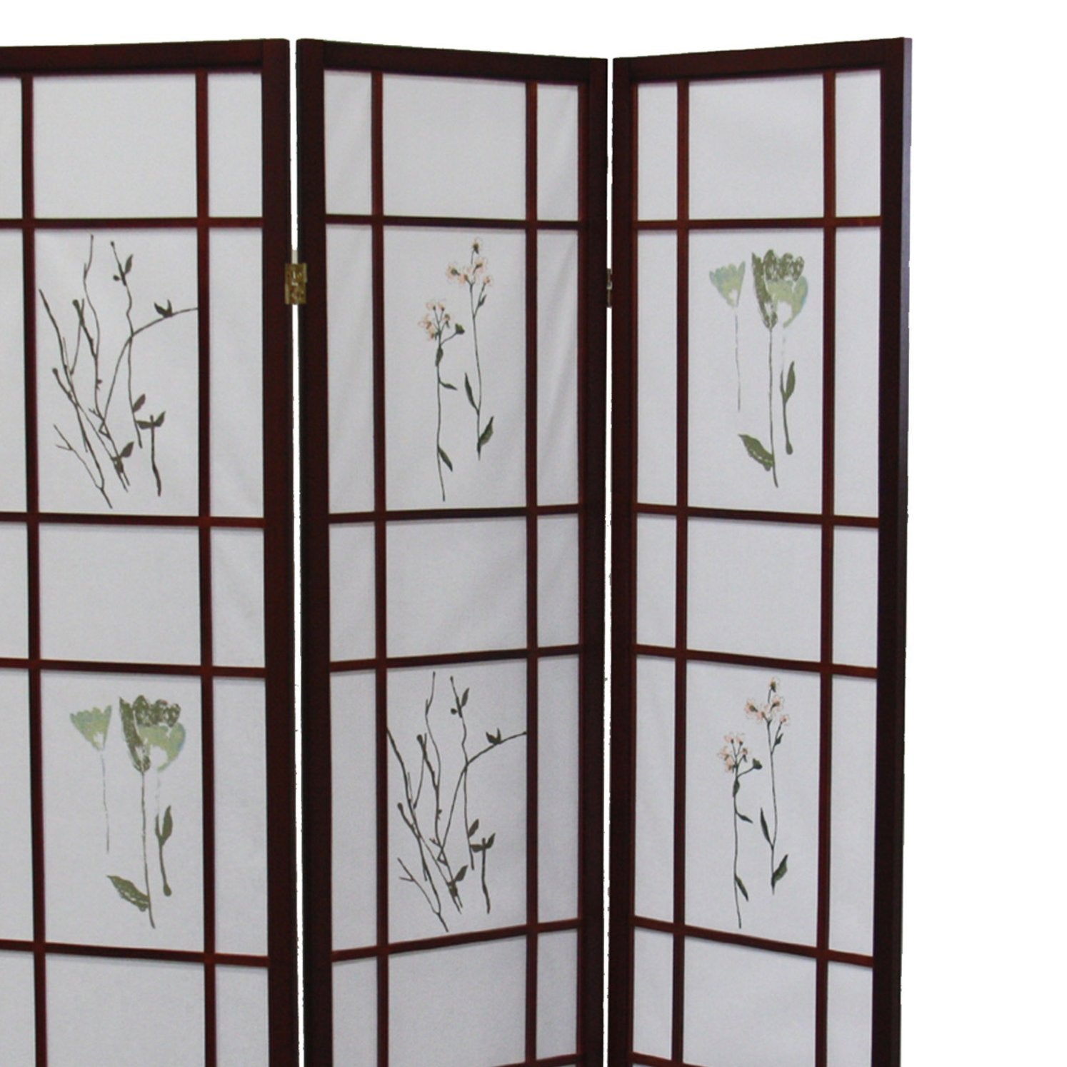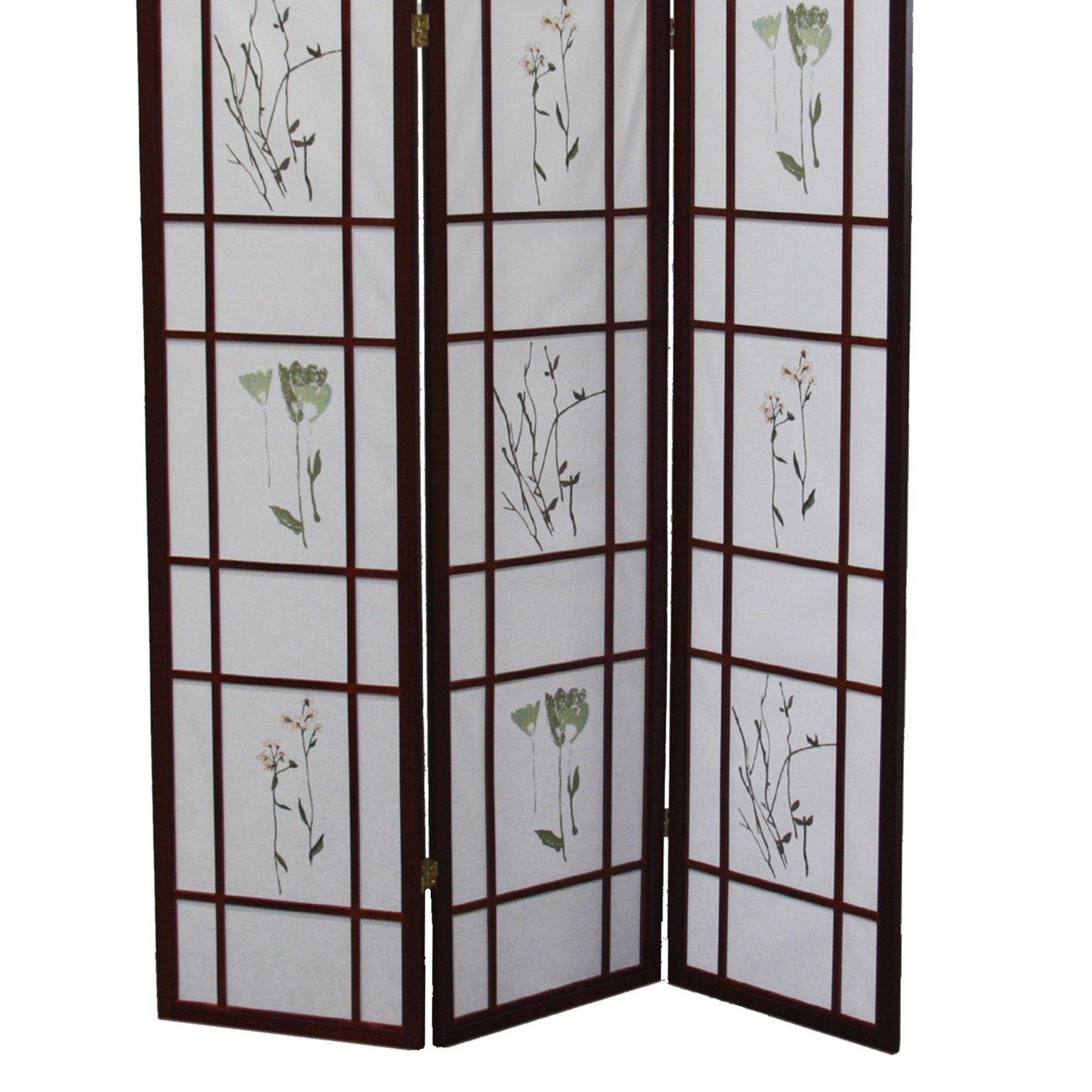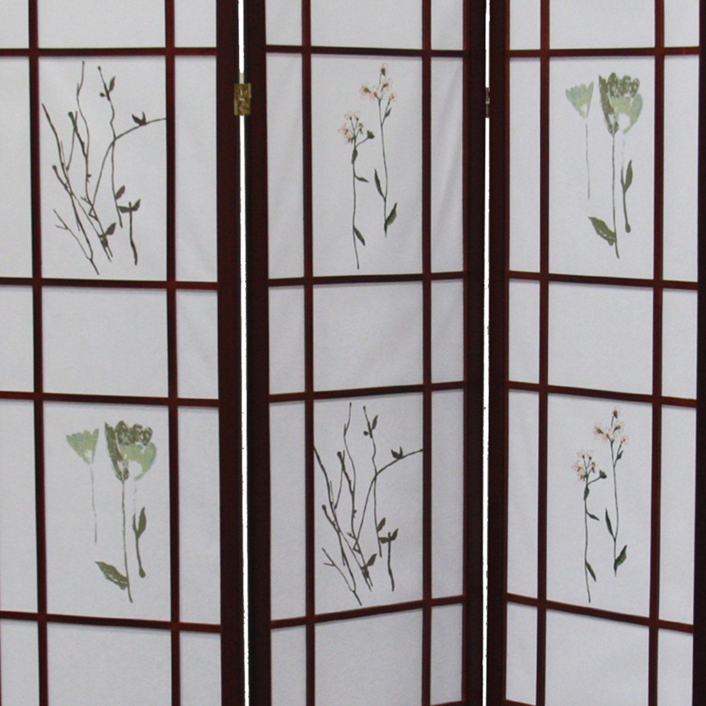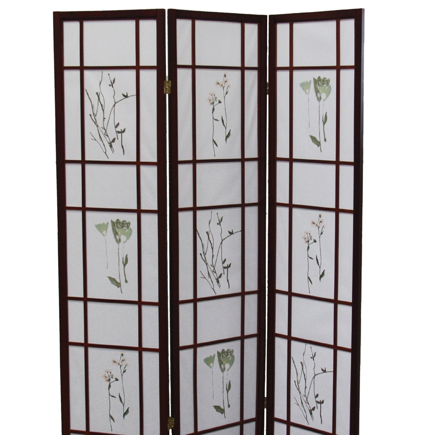 Bring a touch of traditional Asian-inspired elegance and gentle privacy to any room with this 3-panel Shoji-style room divider. Crafted from solid pine with a warm cherry finish and delicate floral prints on each panel, this folding screen combines decorative appeal with functional flexibility—ideal for dividing spaces, creating a dressing area, or adding an artful backdrop to living and bedroom decor.
