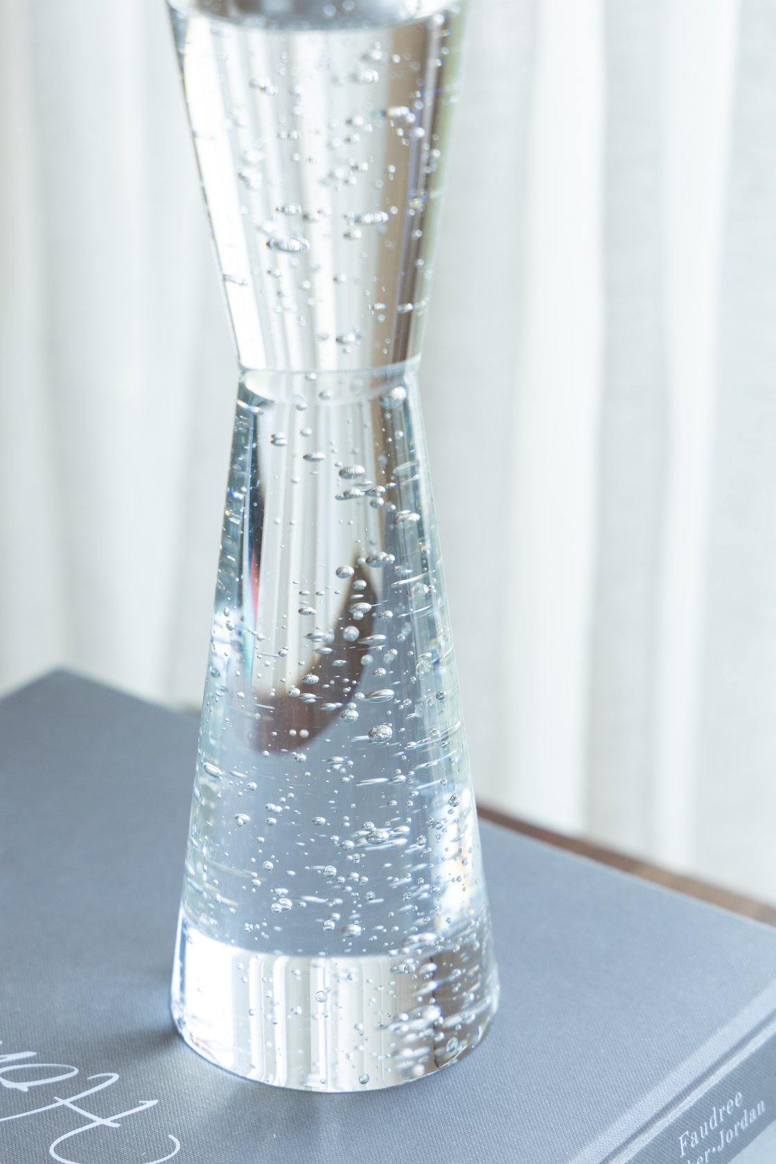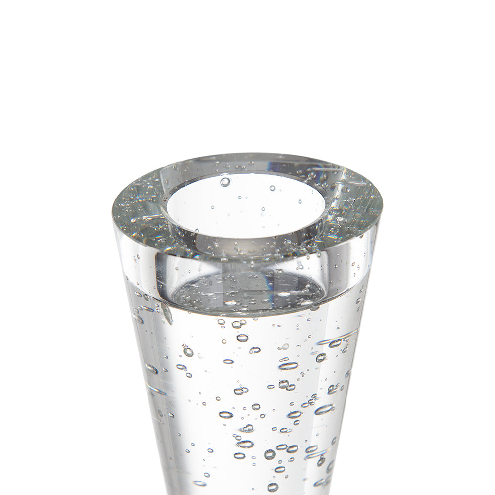Add a touch of modern elegance and warm ambiance to your living or dining space with this clear bubble-glass candle holder. Its sculptural, contemporary silhouette reflects light beautifully and works equally well as a single statement piece or grouped to form a dramatic candlescape for tables, mantels, or shelves.