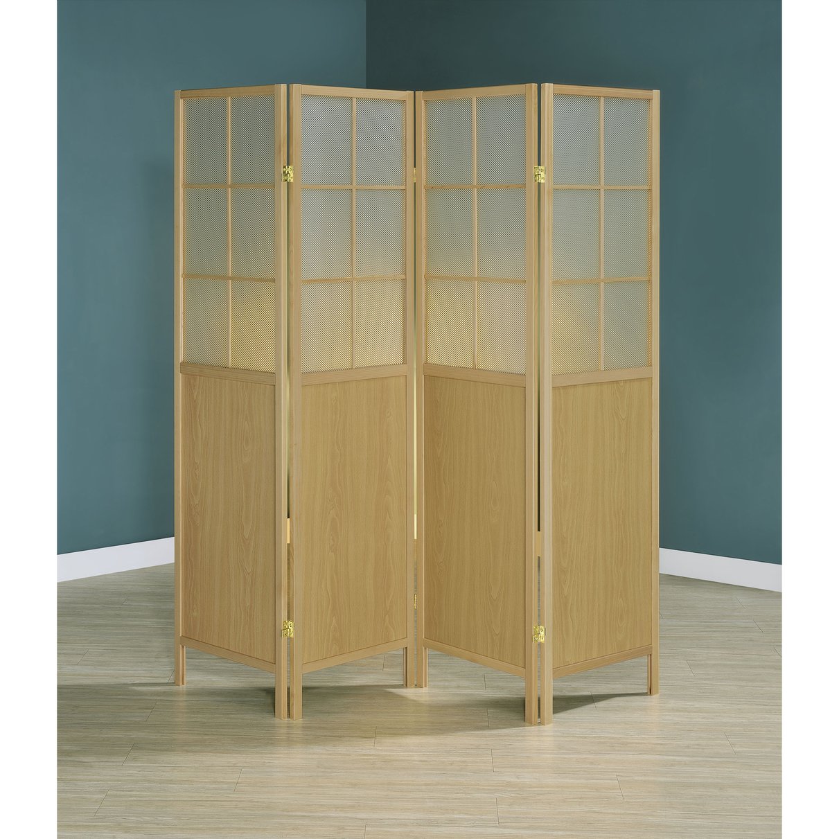 Transform any room with this elegant four-panel folding screen that blends function and subtle style. The soft white windowpane panels gently diffuse light while still offering privacy, and the natural wood frame adds a warm, versatile touch that suits contemporary, transitional, and traditional interiors. Easy to position and fold away, this divider is ideal for creating temporary rooms, home offices, dressing areas, or accent backdrops.