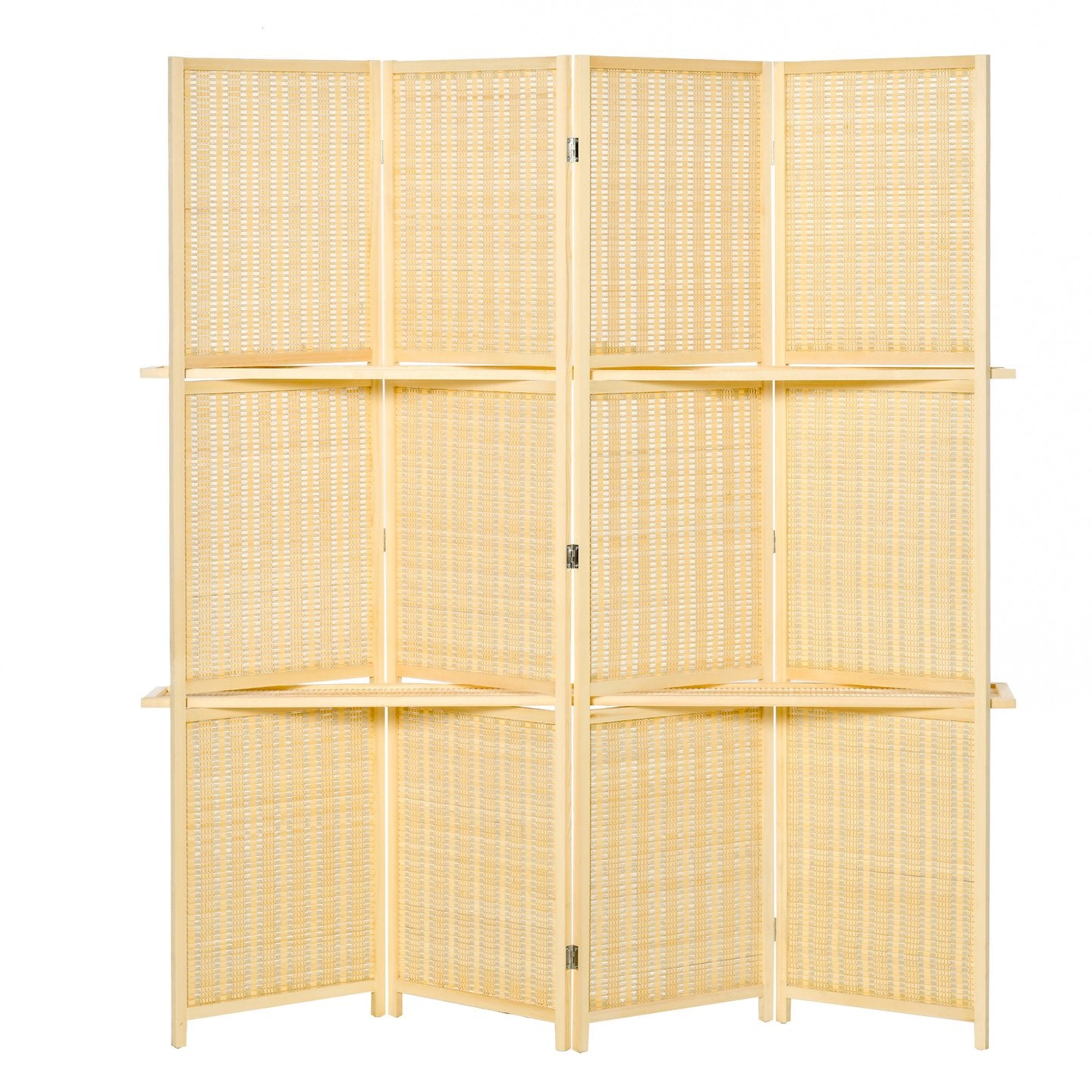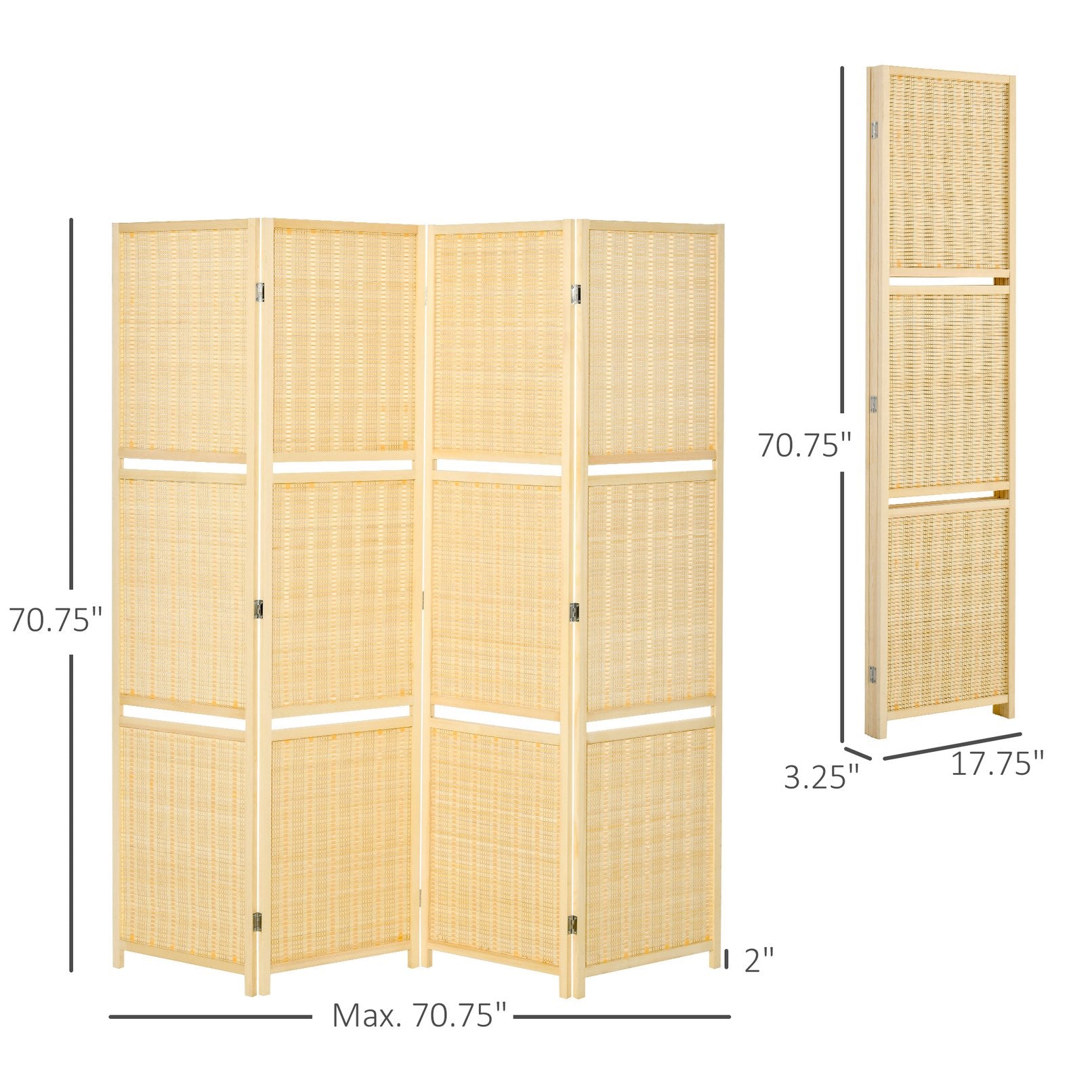 Bring warmth, texture, and flexible privacy to any room with this 4-panel folding bamboo screen. Handcrafted with a solid wood frame and woven bamboo panels, it combines rustic charm with practical design—perfect for dividing living areas, creating a private workspace, or adding an attractive backdrop to a bedroom or office. The freestanding, hinged construction folds for easy setup and compact storage, while elevated feet improve airflow and protect against moisture.
