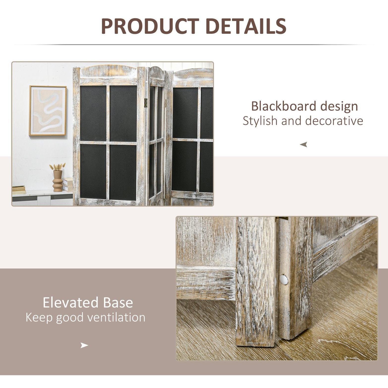 - Farmhouse Style: With solid wood and blackboards on both sides, this privacy panel screen brings a versatile yet rustic feeling to your living room, bedroom, or home office.