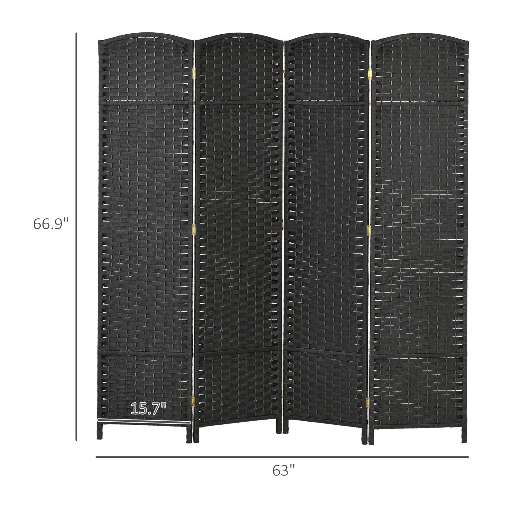 - Room Separator Info: Overall Dimensions: 63" W x 0.6" D x 66.9" H. Folded Dimensions: 15.7" W x 2.5" H x 66.9" H. No assembly required.