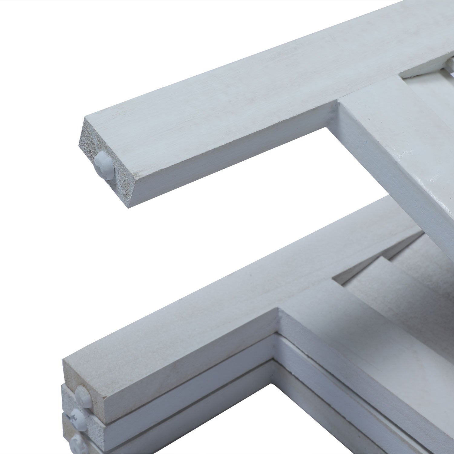 - Finish: Old white distressed paint that complements coastal, farmhouse, and shabby-chic interiors.