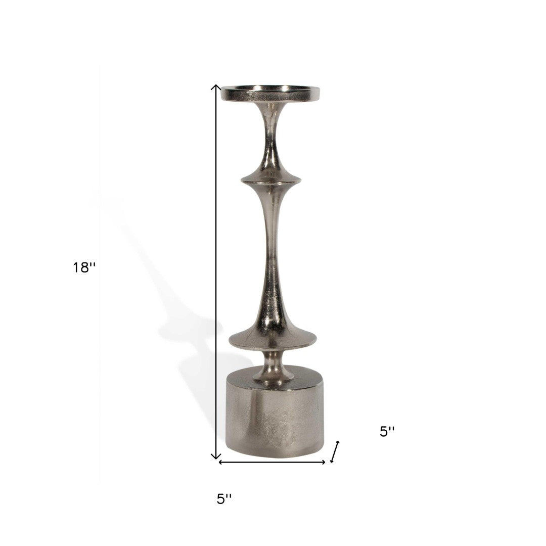 - Crafted from durable silver metal, this contemporary candle holder enhances your decor with its geometric design.