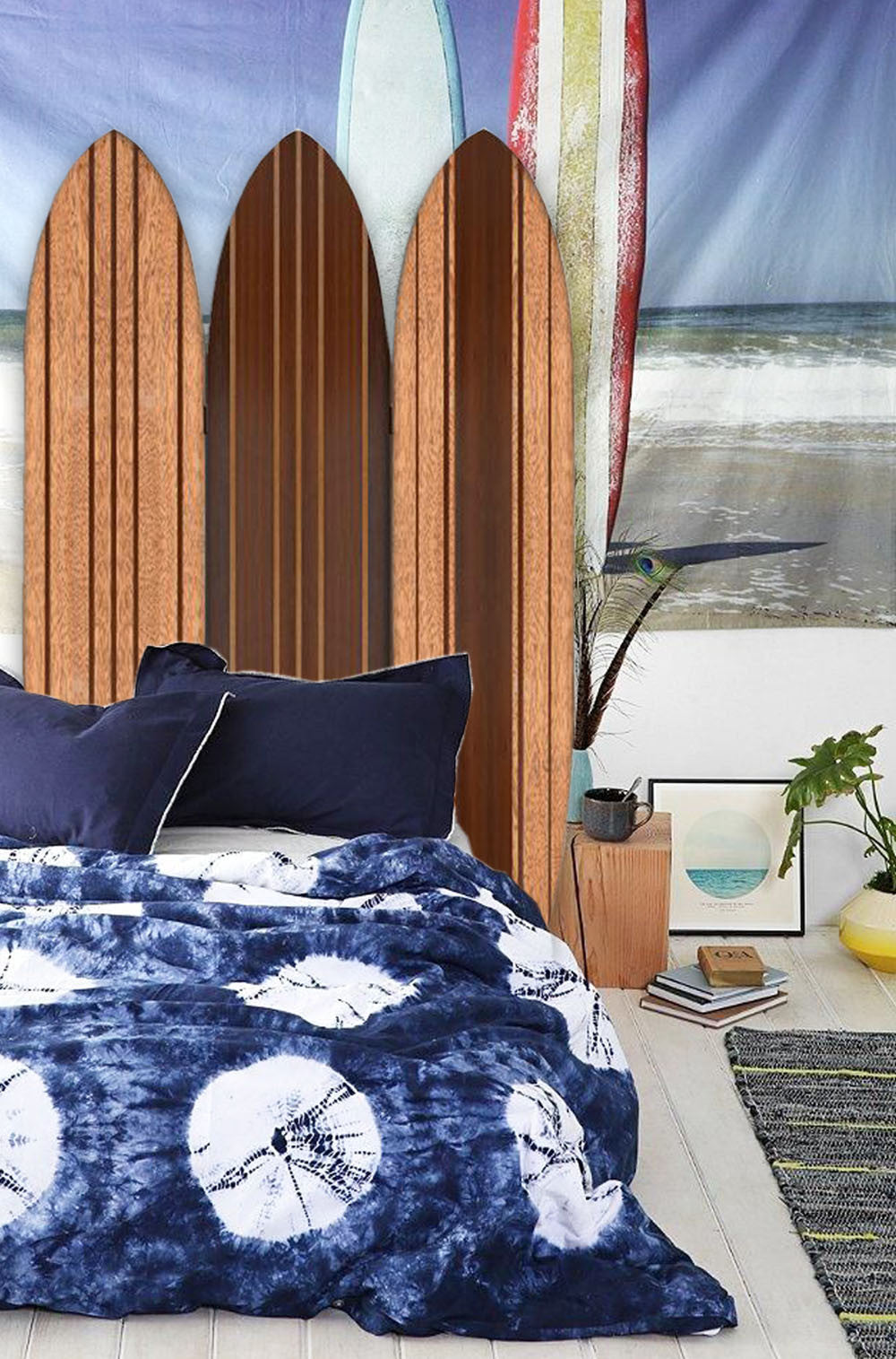 Inspired by traditional wooden surfboards. 47" x 1" x 71"