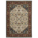- Color(s): Primary colors are mottled ivory and beige with navy, deep red, green, blue and gold