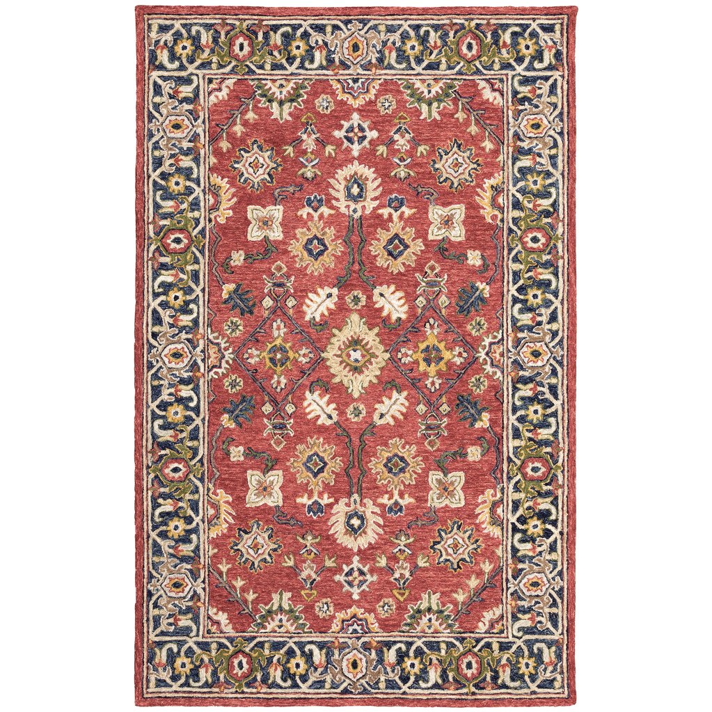- Rug colors include red, navy, green, gold and clay