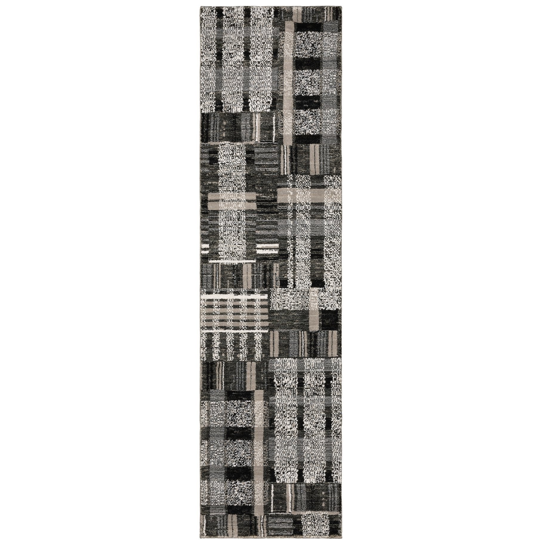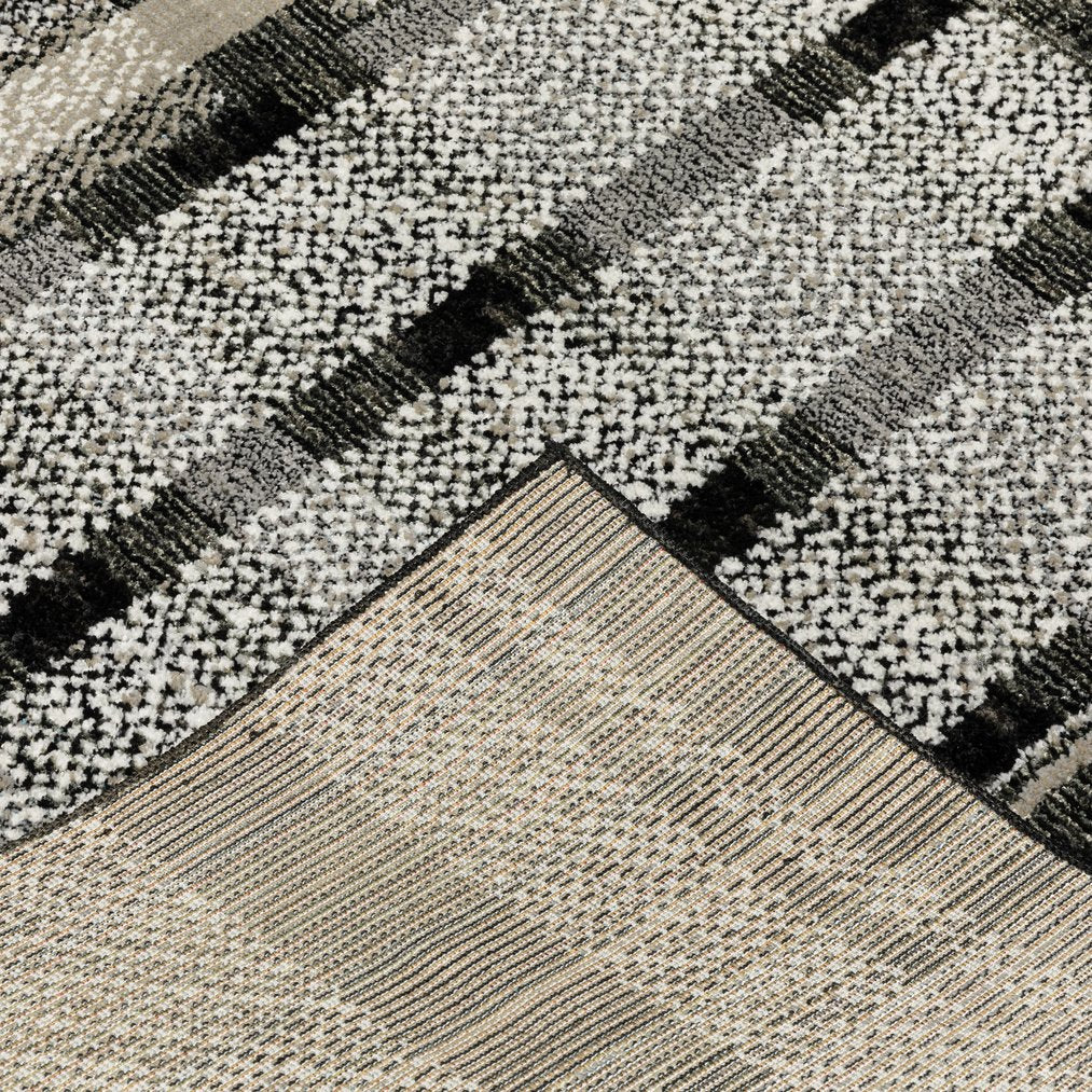 - Rug colors include shades of black, grey and ivory