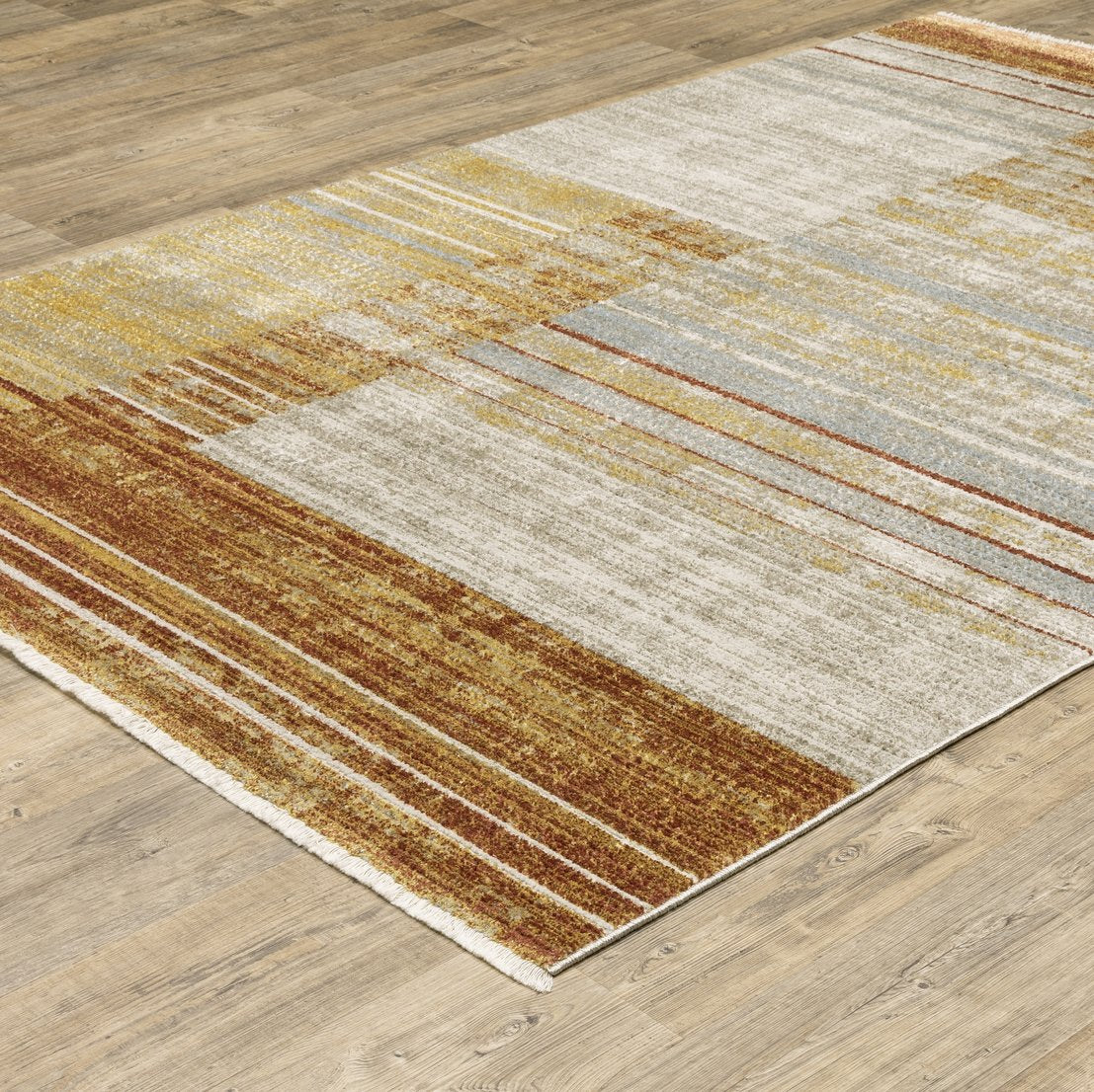 - Rug colors include rust, gold, blue, grey, ivory and tan