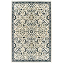 - Color(s): Rug colors include an ivory backdrop with a navy border and accents of gold