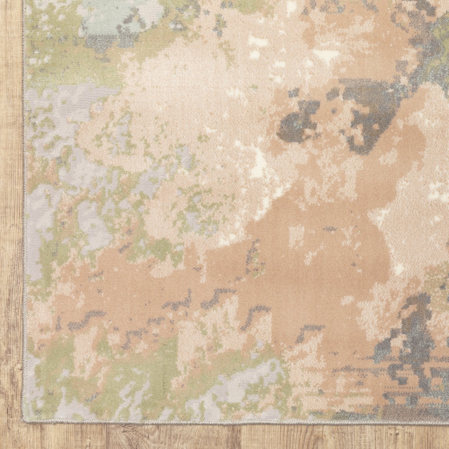 - Rug colors include shades of grey, sage green, salmon pink and cream