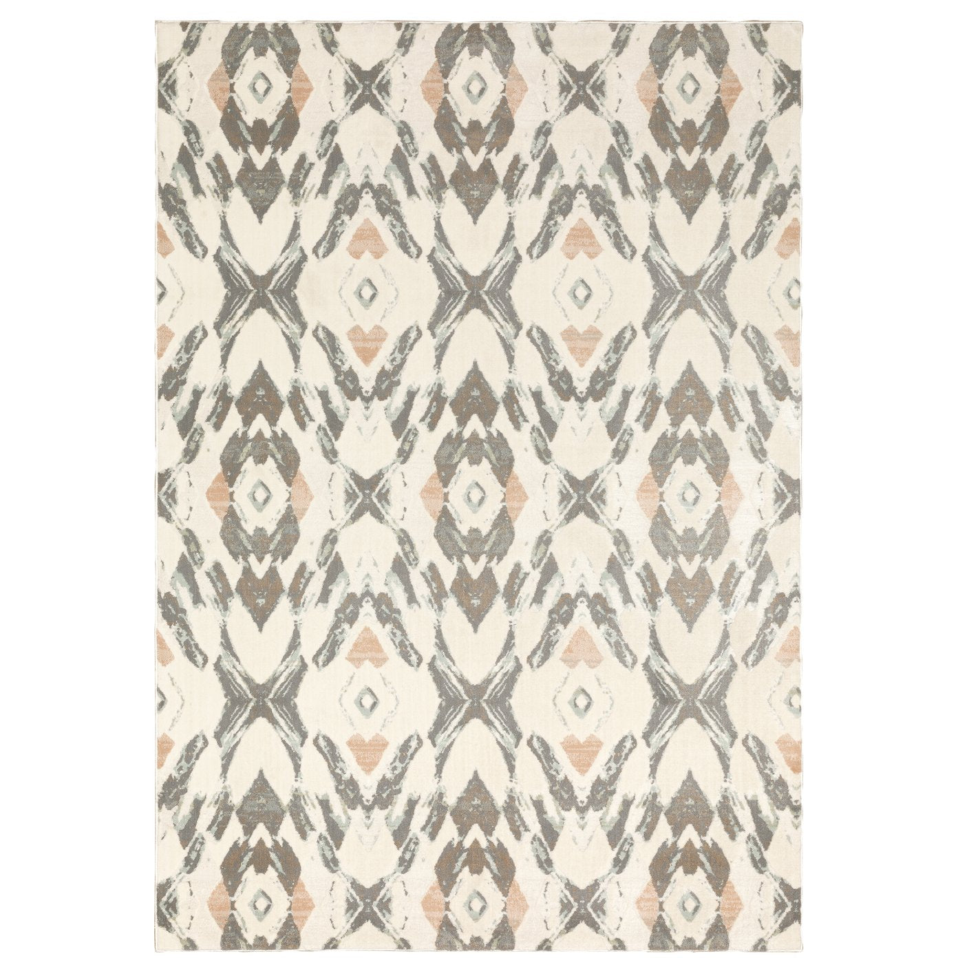 - Rug colors include shades of ivory, salmon pink, grey and sage
