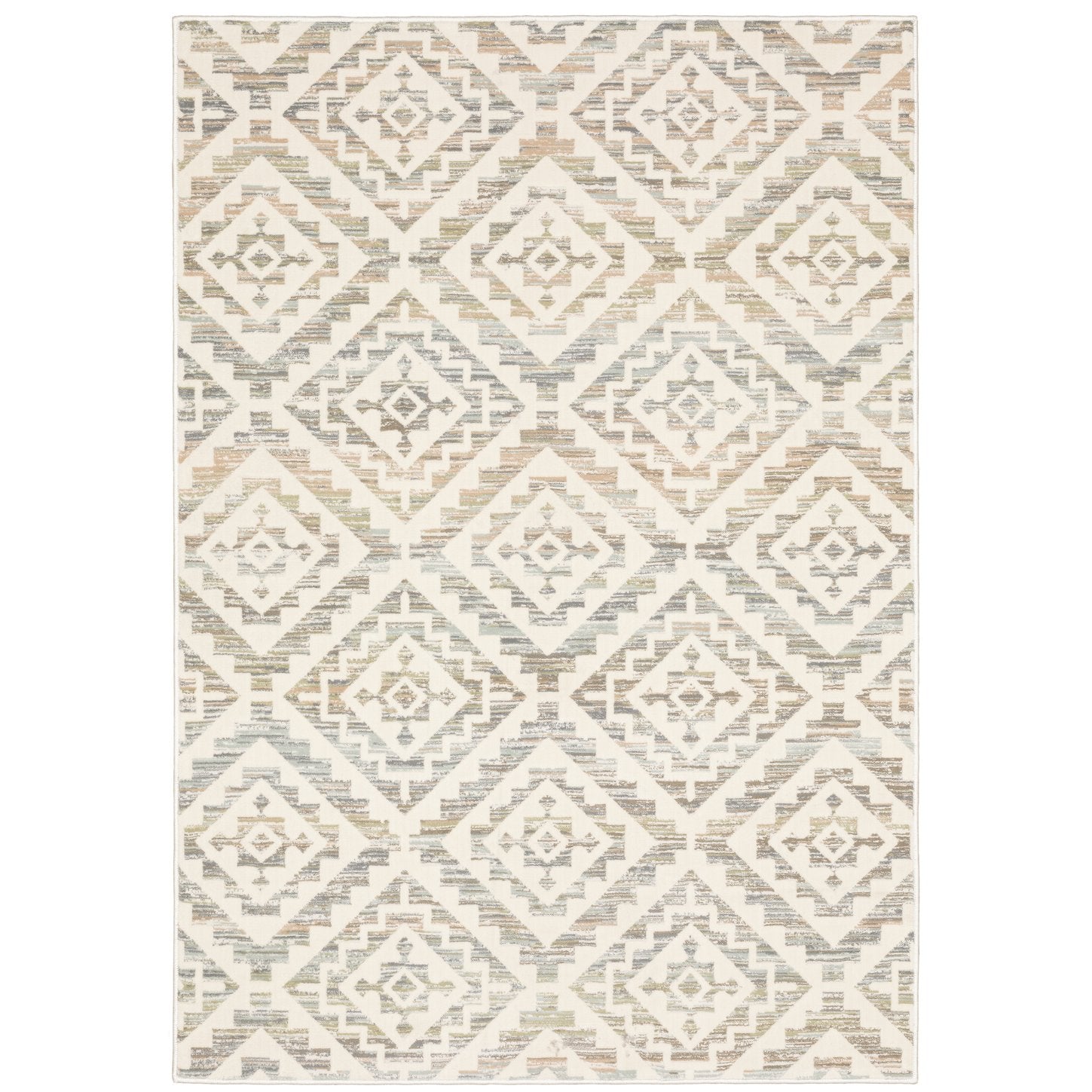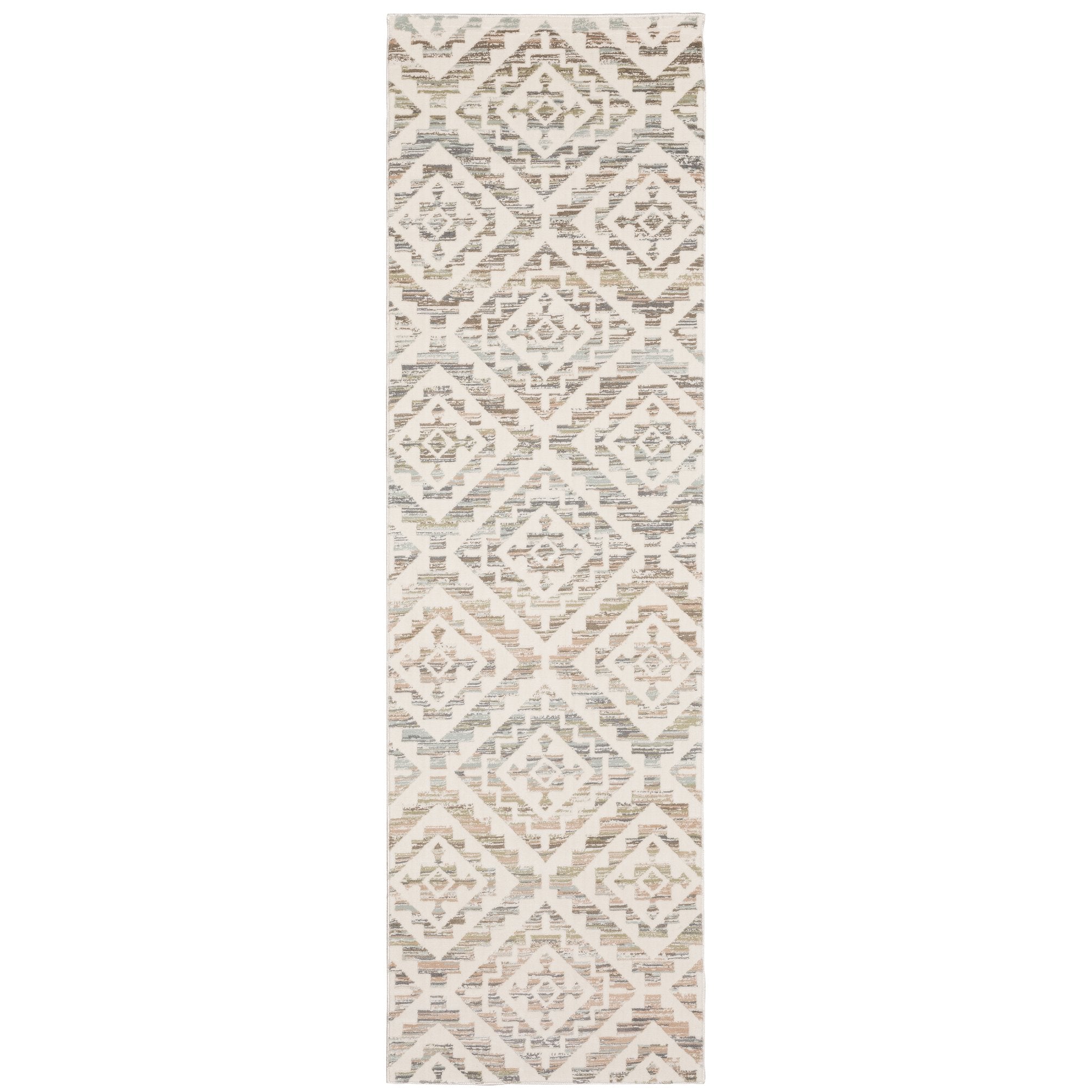 - Rug has cream, salmon pink, sage, taupe and gray colors