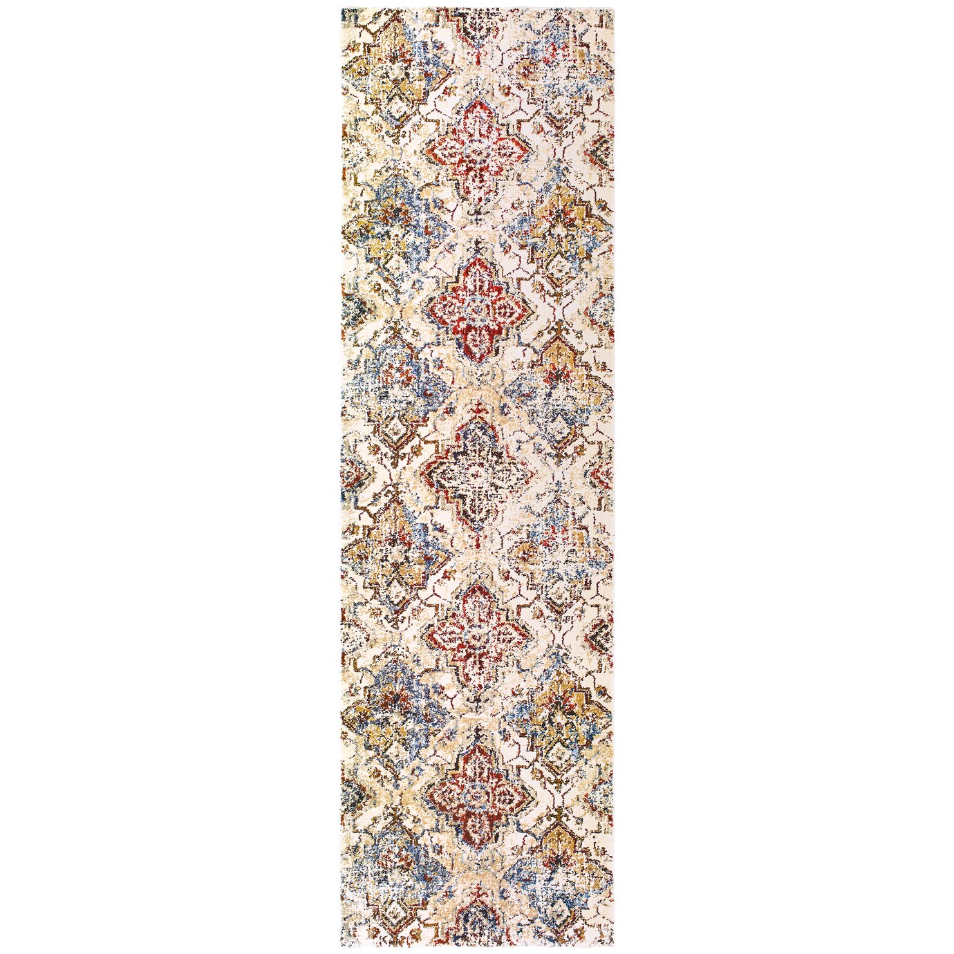 - Features a distressed, oriental medallion pattern