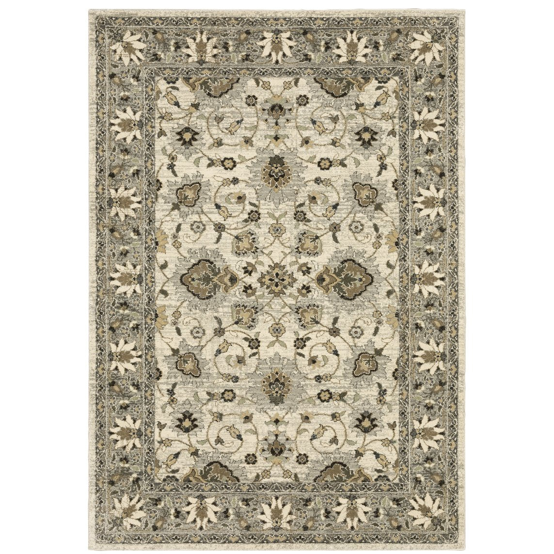 - Rug features shades of beige, grey, brown, tan and charcoal